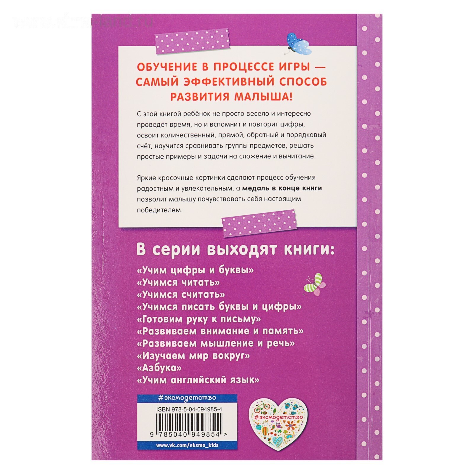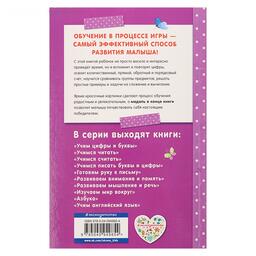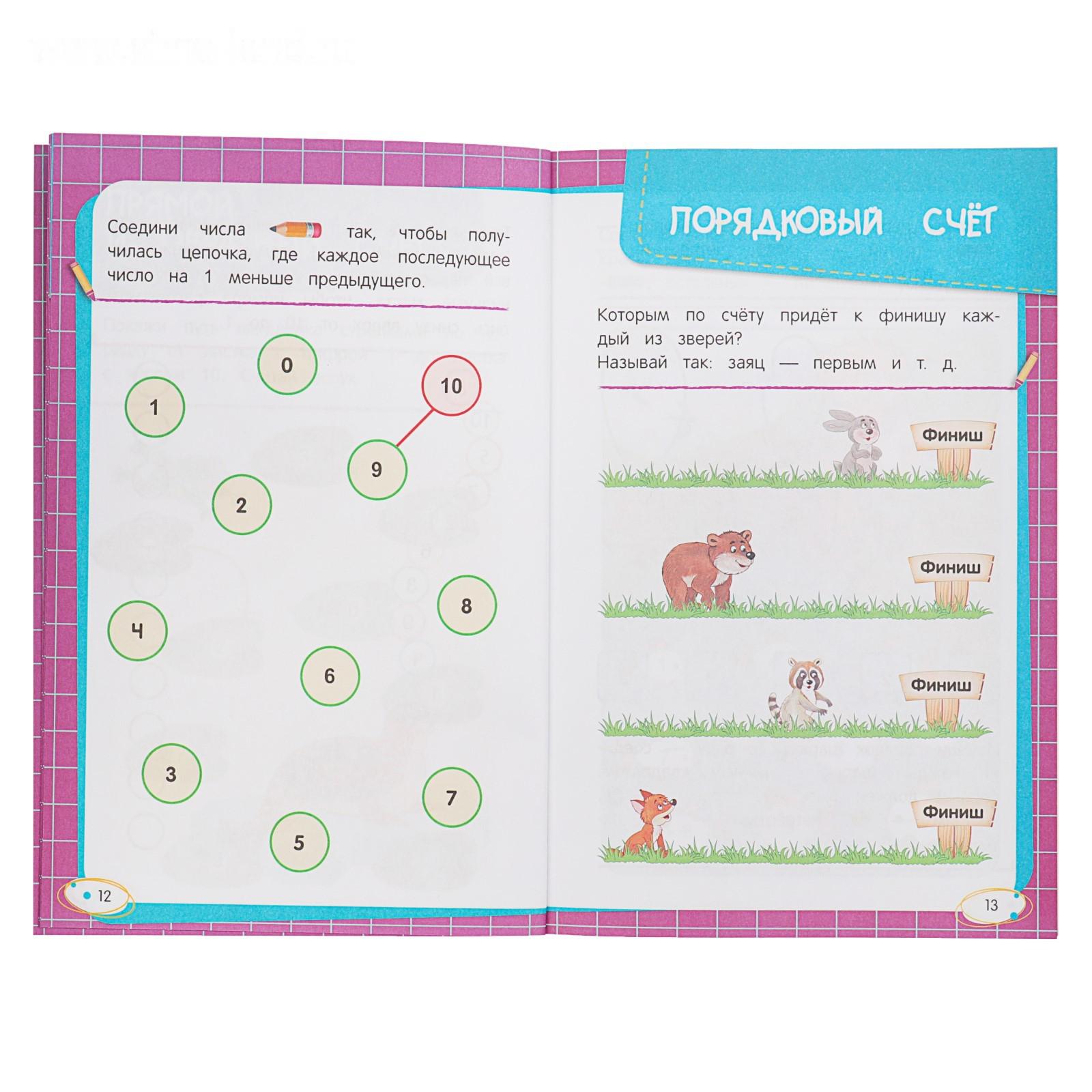 Основная цель пособия, соответствующего ФГОС, - научить малыша считать. Выполняя увлекательные интерактивные задания, ребёнок вспомнит и повторит цифры, освоит количественный, прямой, обратный и порядковый счёт, научится сравнивать группы предметов, решать простые примеры и задачи на сложение и вычитание. Упражнения помогут малышу потренировать руку, развить фонематический слух и внимание и подготовиться к школе.Материал представлен в игровой форме, что поможет сделать процесс обучения интересным и занимательным. В конце занятий ребёнок награждается медалью за старание, любознательность и успехи. Издание удобно брать с собой в дорогу, чтобы занять ребенка полезным делом.
