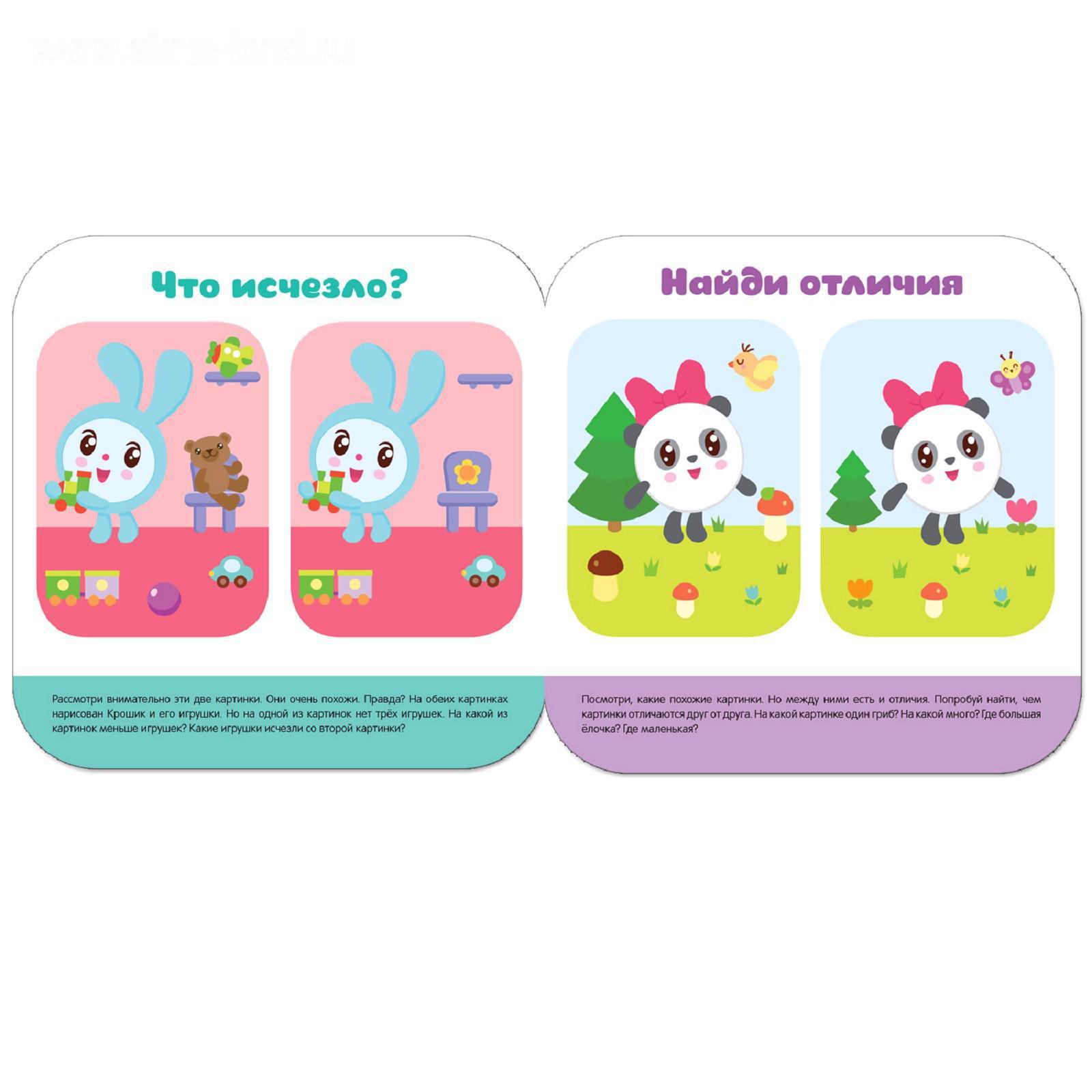 Развивающие карточки на картонной вкладке помогут превратить обучение в веселую игру. Их будет удобно хранить в конверте, расположенном на внутренней стороне обложки.