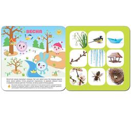 Развивающие карточки на картонной вкладке помогут превратить обучение в веселую игру. Их будет удобно хранить в конверте, расположенном на внутренней стороне обложки.