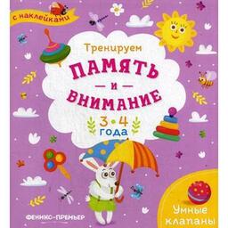 Тренируем память и внимание: 3-4 года: книжка с наклейками