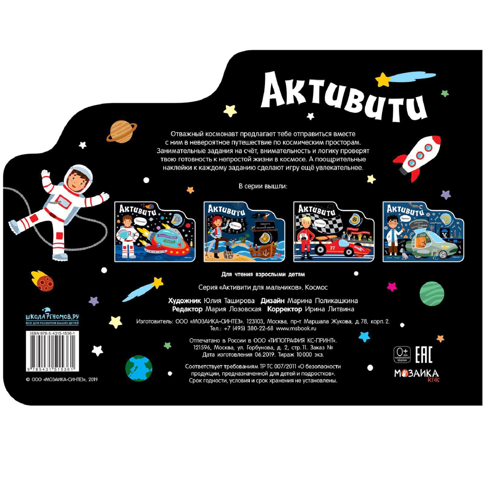 Книга «Космос» из серии «Активити для мальчиков» поможет весело и с пользой провести время где угодно: дома, в гостях, поездке и на прогулке. Занятия по ней способствуют развитию мёлкой моторики, логического мышления, внимания и памяти.