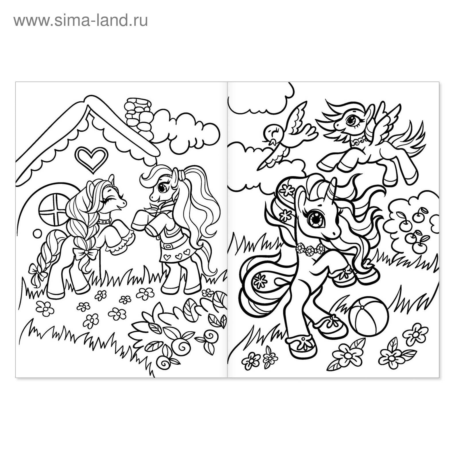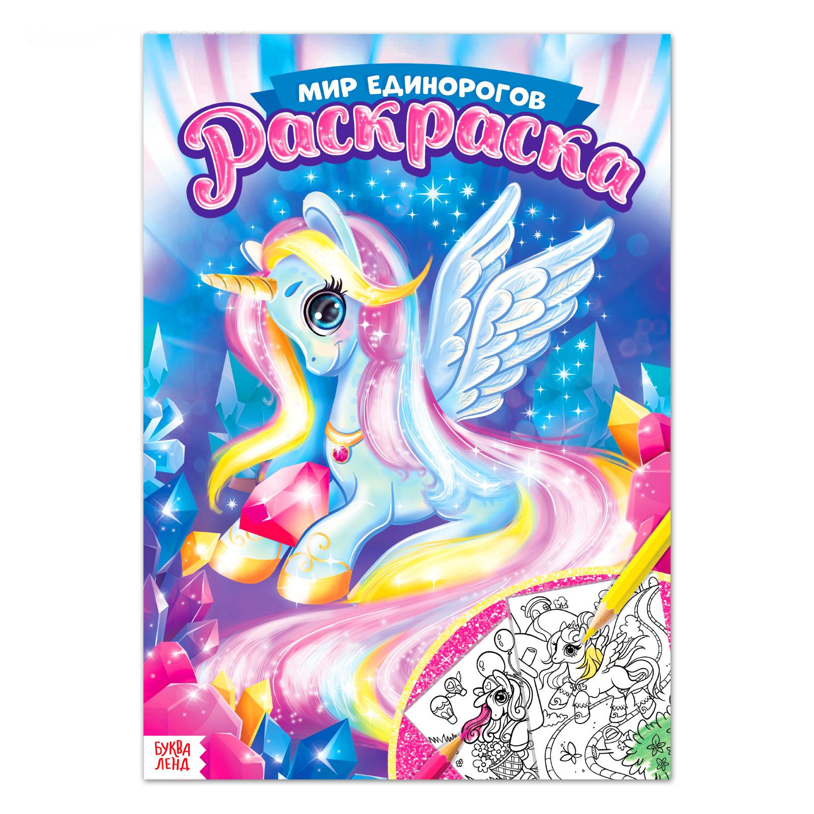 Раскраска «Мир единорогов» — книга с контурными картинками волшебных пони. Малышка сможет их раскрасить карандашами, красками или фломастерами. Страницы и обложка выполнены из бумаги.