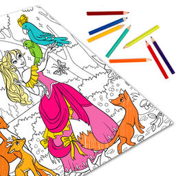 Плакат сделан из бумаги, его можно раскрашивать чем угодно, начиная он цветных карандашей, заканчивая акварелью.