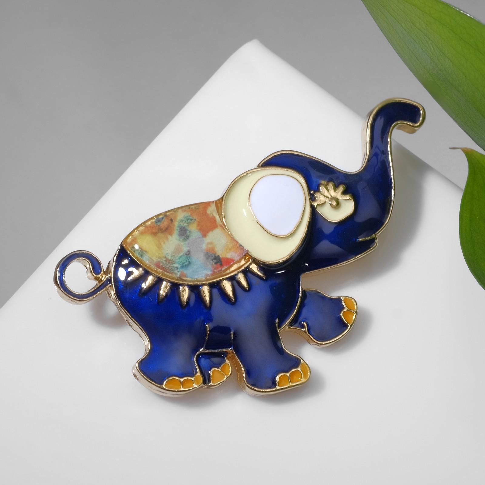Брошь "Слон" с накидкой, цветная в золоте