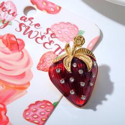 Брошь "Клубника", цвет красно-белый в золоте