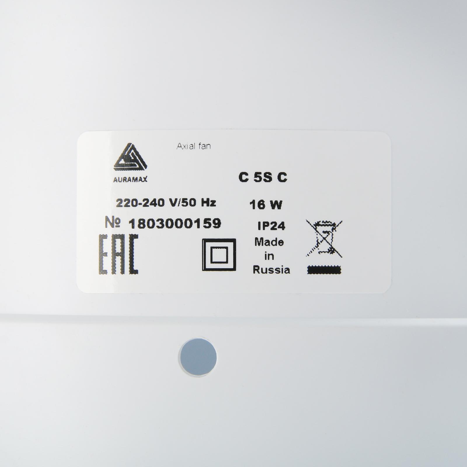 Вентилятор вытяжной AURAMAX С 5S С, 183х253 мм, d=125 мм, 220‒240 В, с обратным клапаном