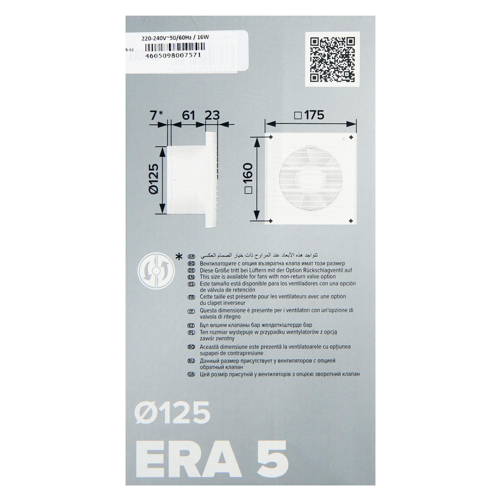 Вентилятор вытяжной ERA 5S-02, 175х175 мм, d=125 мм, 220‒240 В
