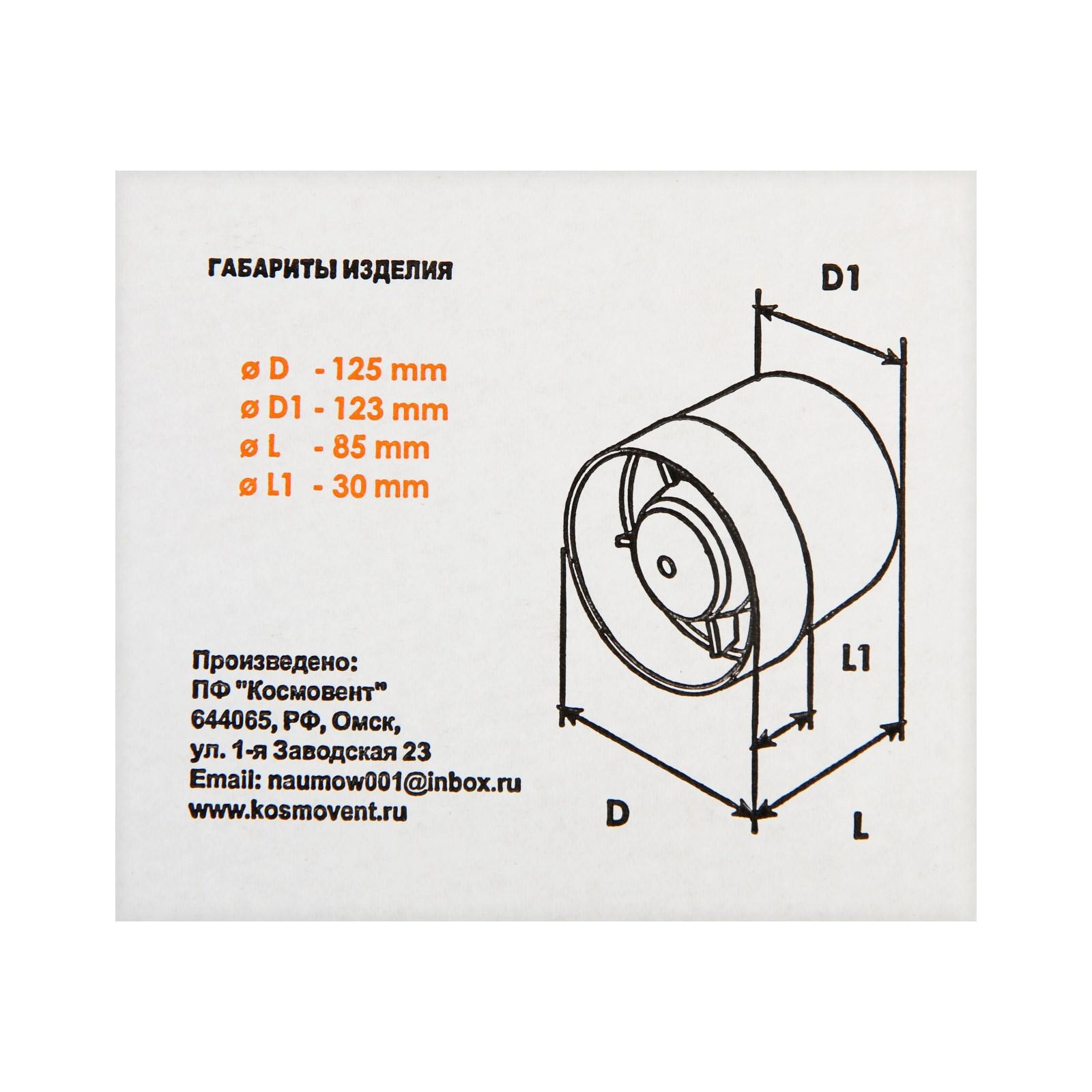 Вентилятор вытяжной "КосмоВент" ВК125, d=125 мм, 220 В, канальный