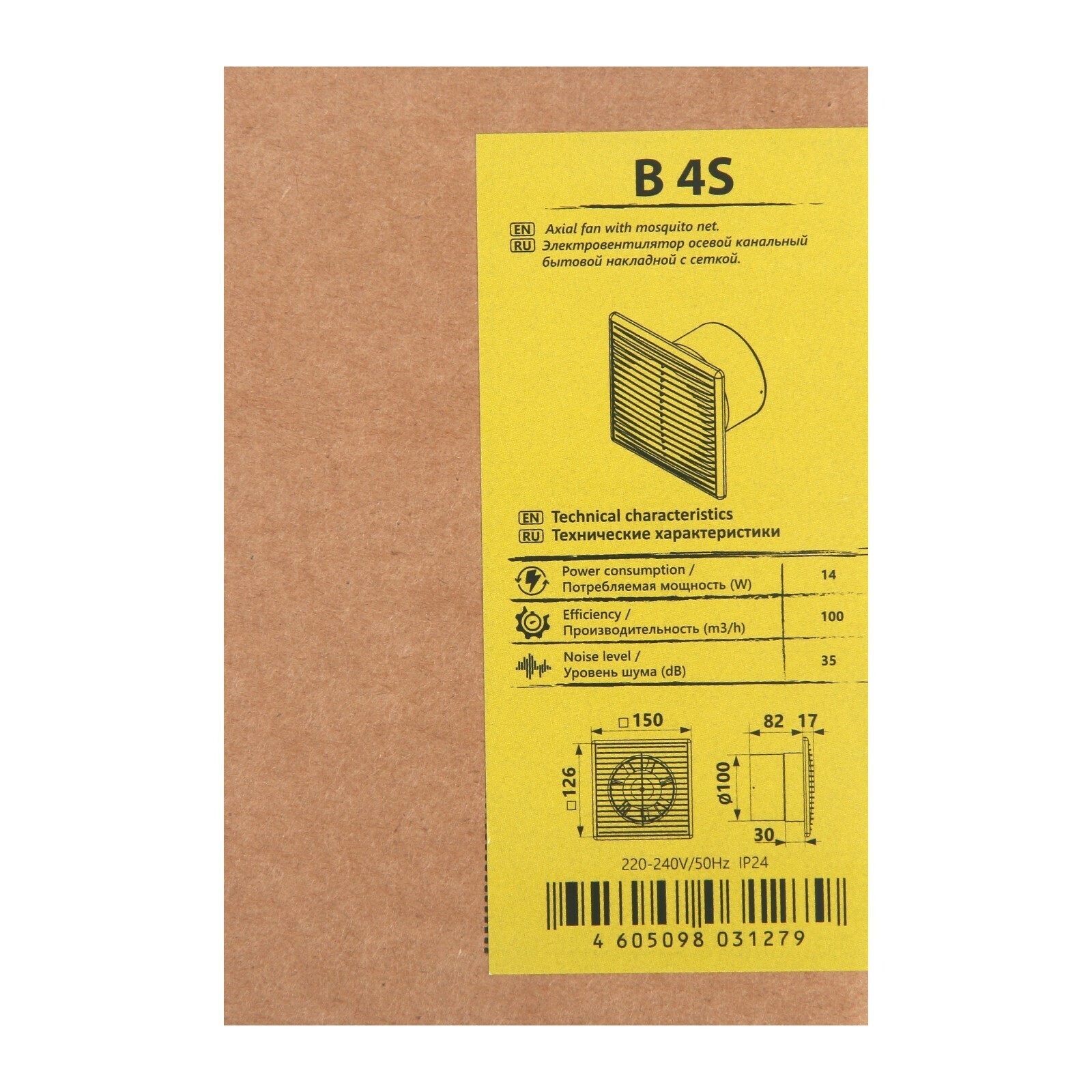Вентилятор вытяжной AURAMAX В 4S, 150x110 мм, d=100 мм, 220 В, 14 Вт, 35 дБ