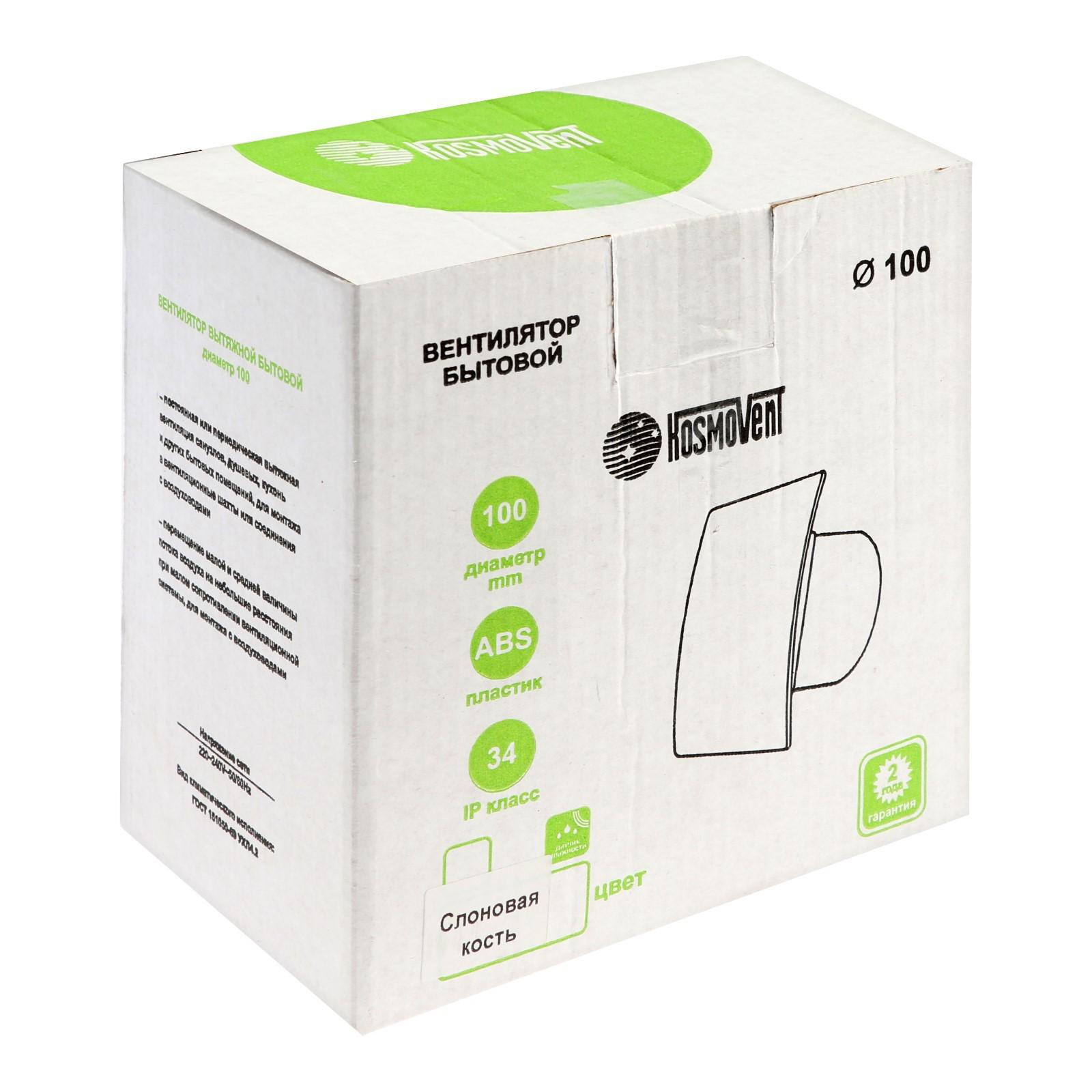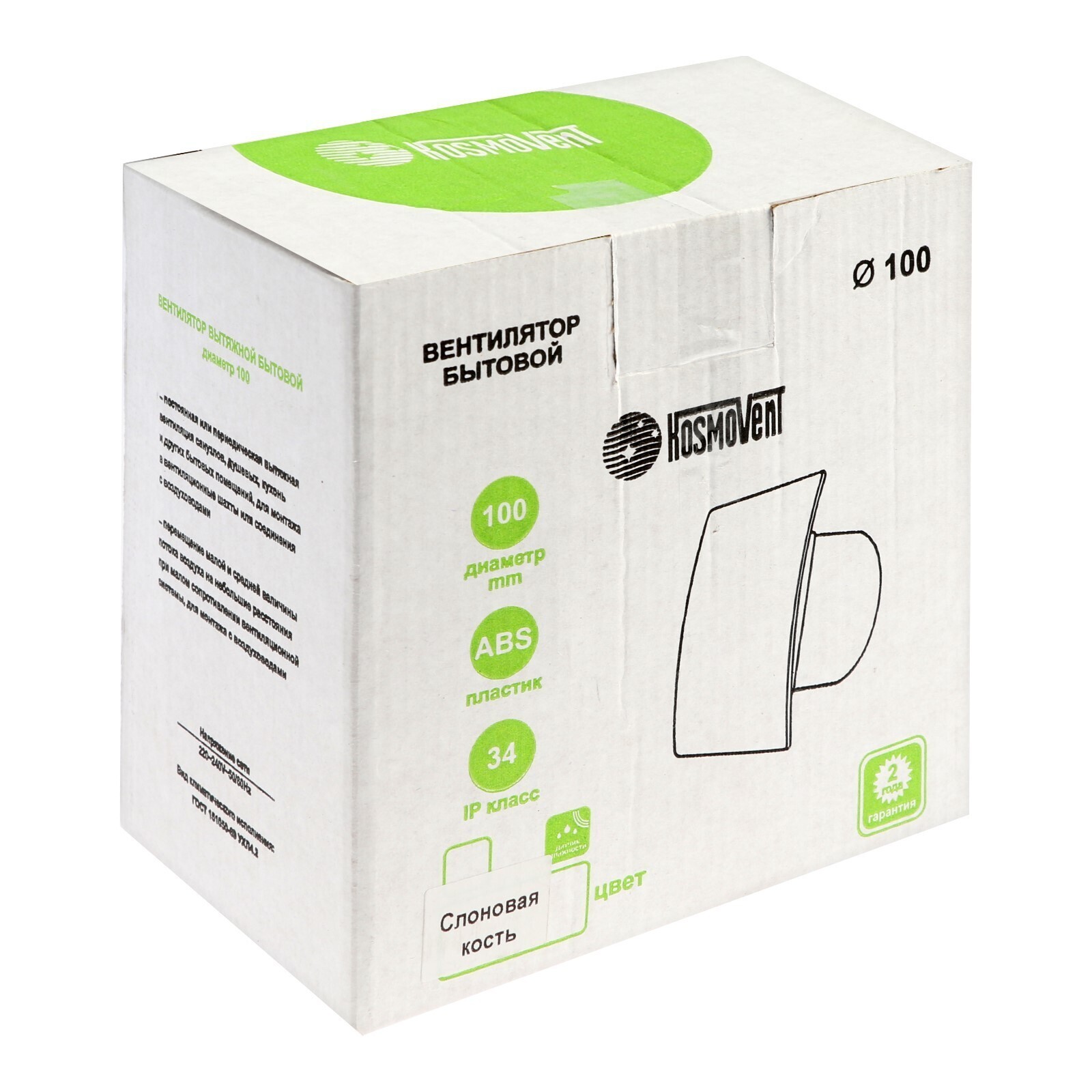 Вентилятор вытяжной "КосмоВент" KV100SK, d=100 мм, 33-41 дБ, без выключателя, слоновая кость