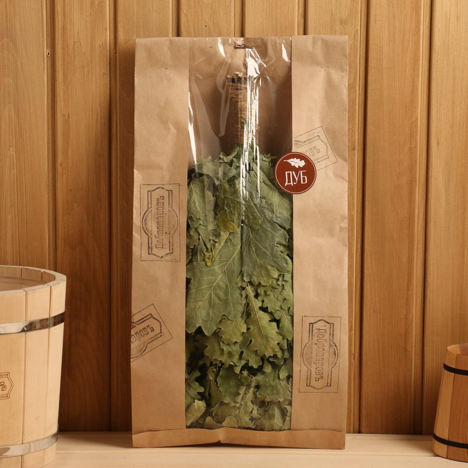 Веник дла бани дубовый с оплеткой, в еврослоте