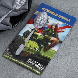 Ложка с гравировкой подарочная на открытке "За тобой как за стеной!"