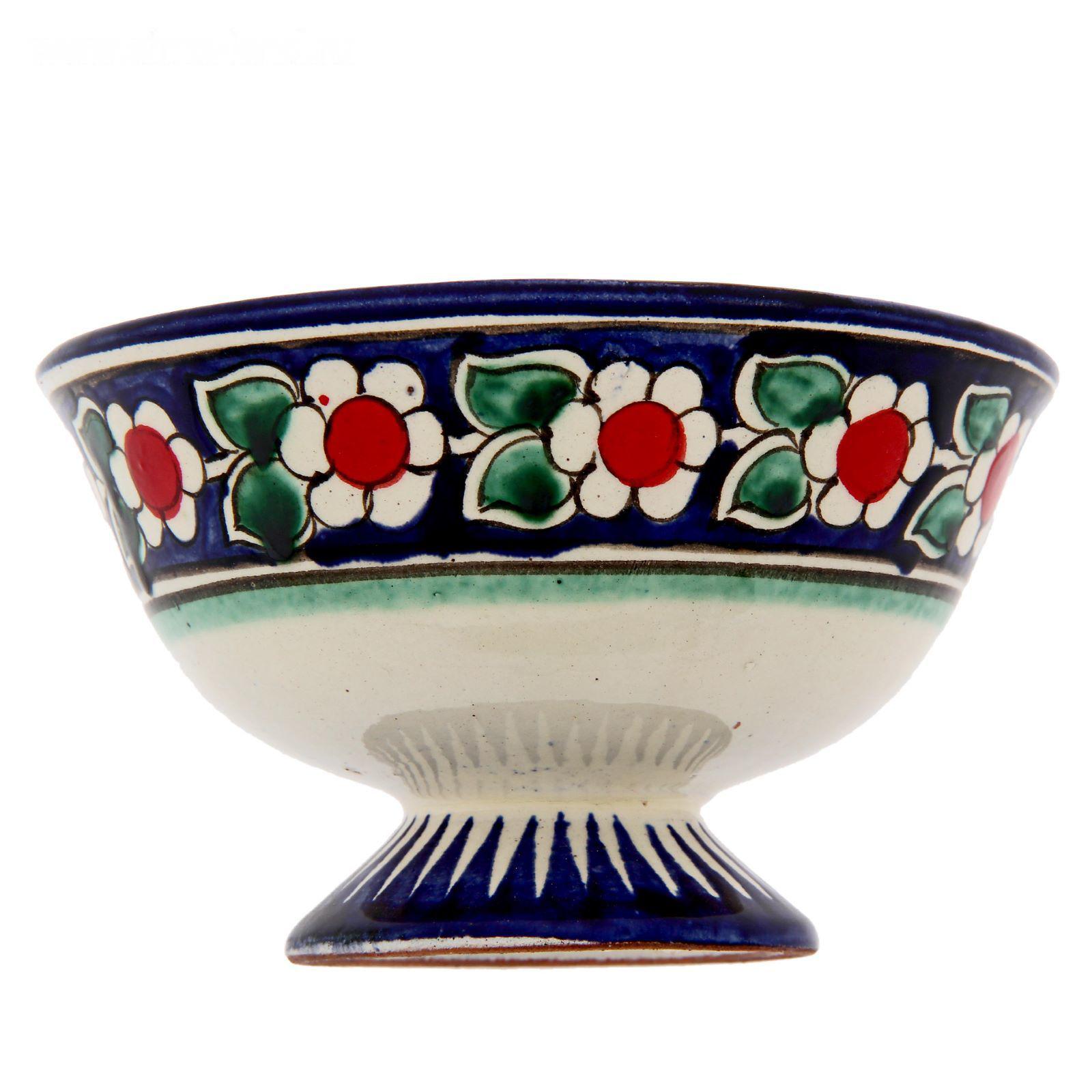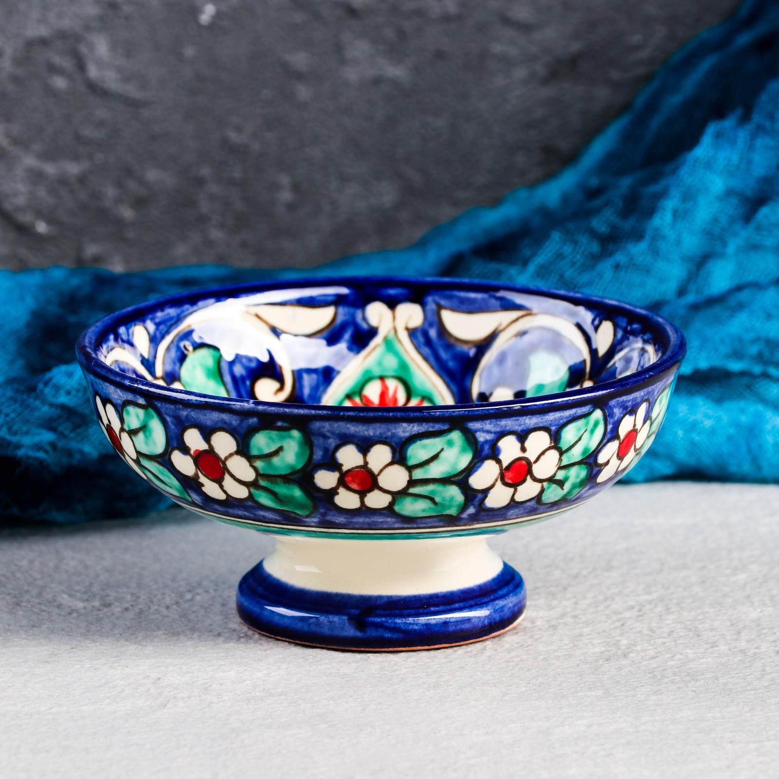 Конфетница Риштанская Керамика "Цветы", 12 см, синяя