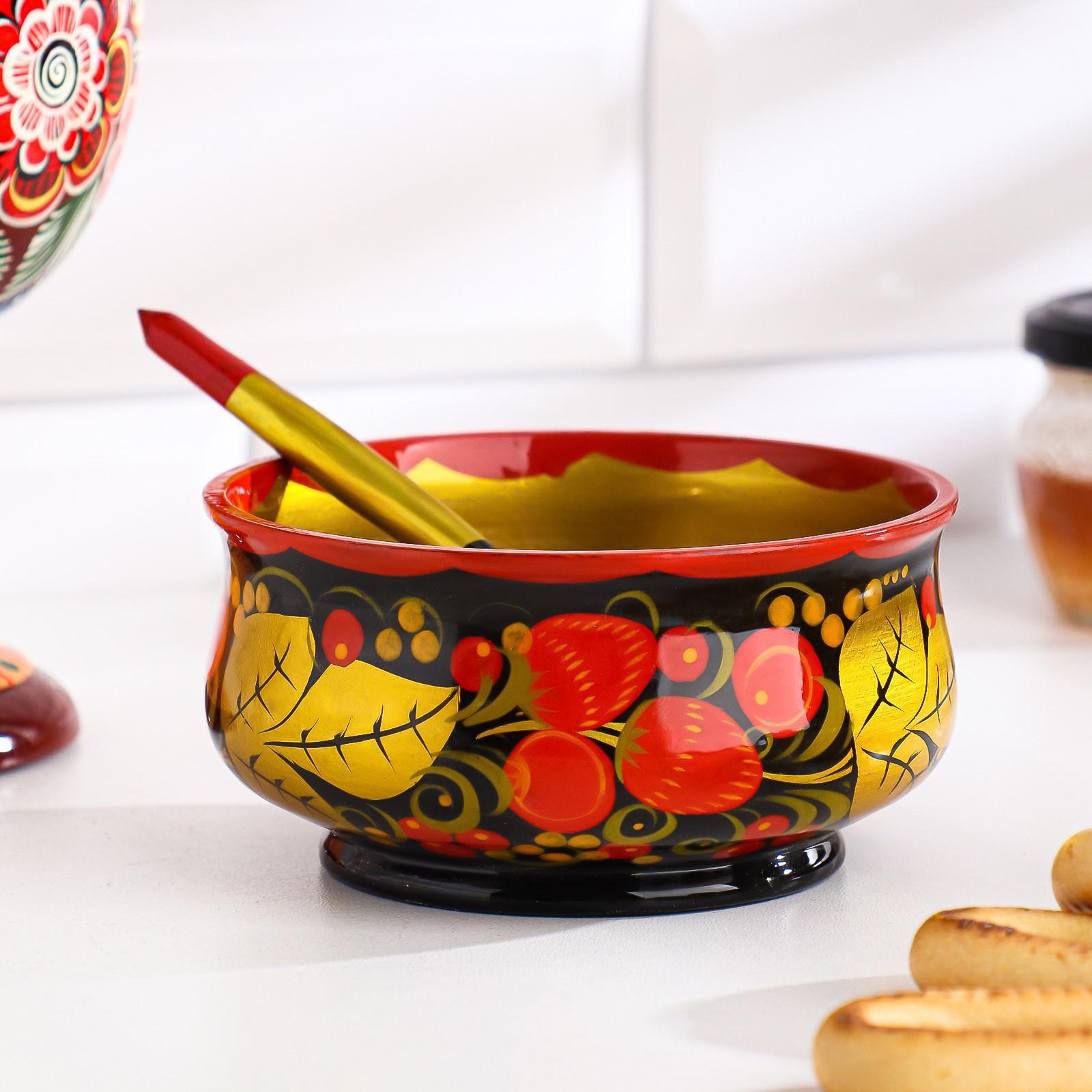 Набор чашка с малой ложкой, 12х6 см, хохлома