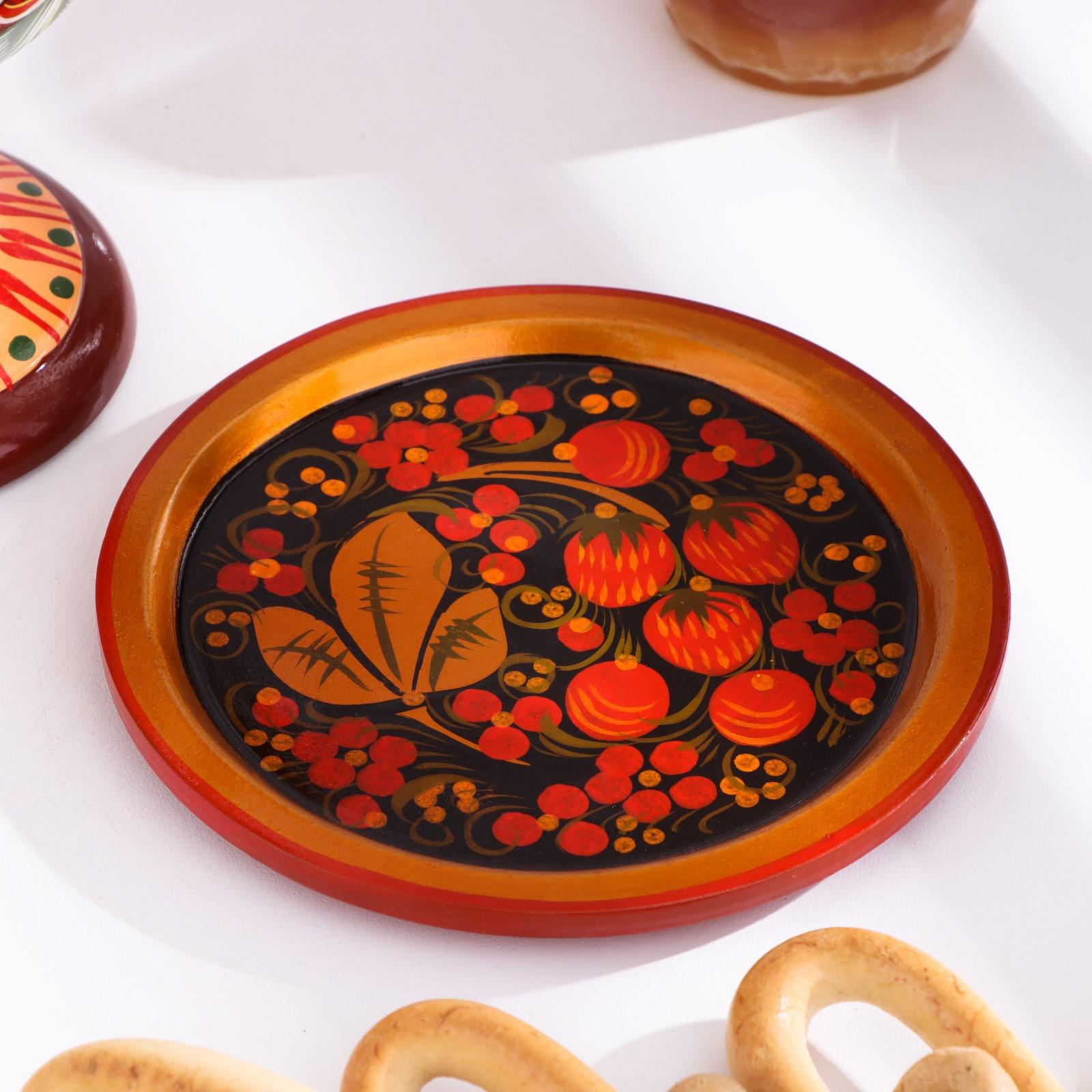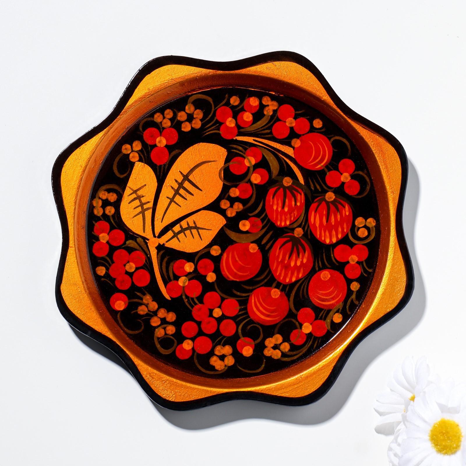 Тарелка «Земляничка», 15×0,5 см, хохлома