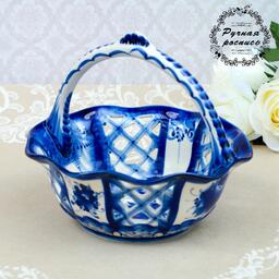 Корзинка "Уют", гжель, фарфор, 17х20 см