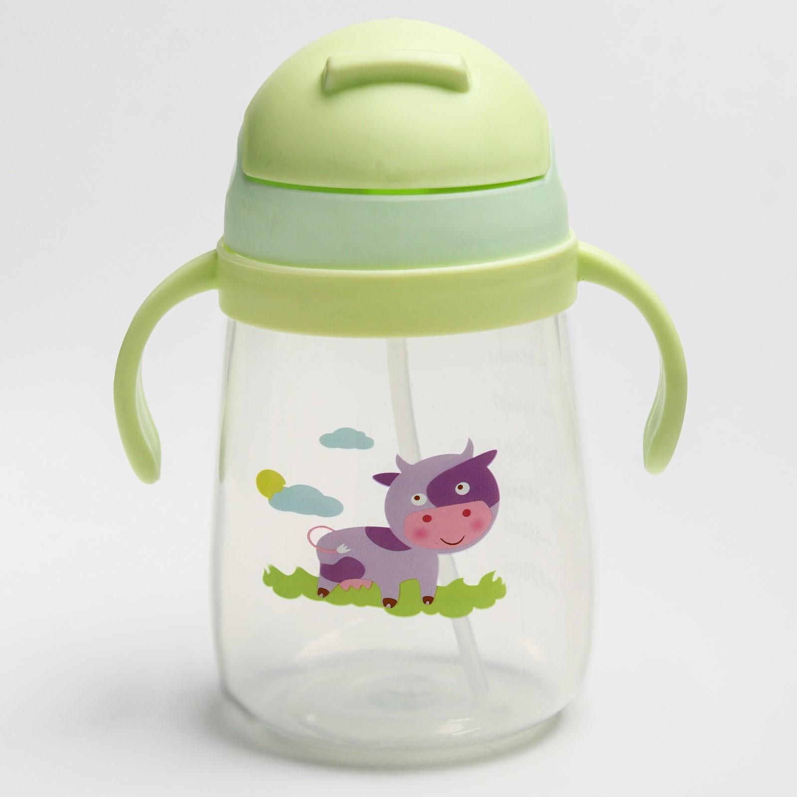 Поильник с силиконовой трубочкой и ручками, 400 мл., цвет СЮРПРИЗ