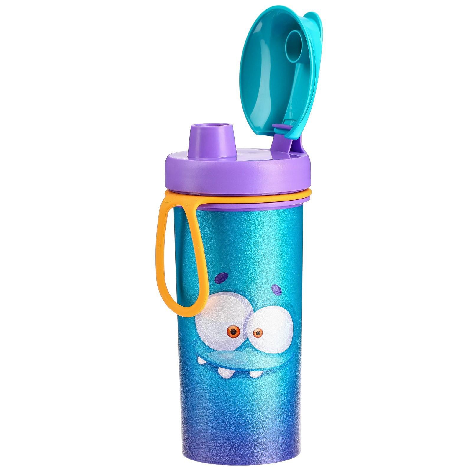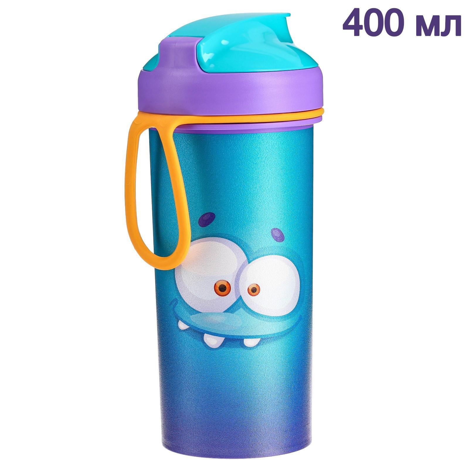 Бутылочка детская с декором и петлей, 400мл, цвет голбой