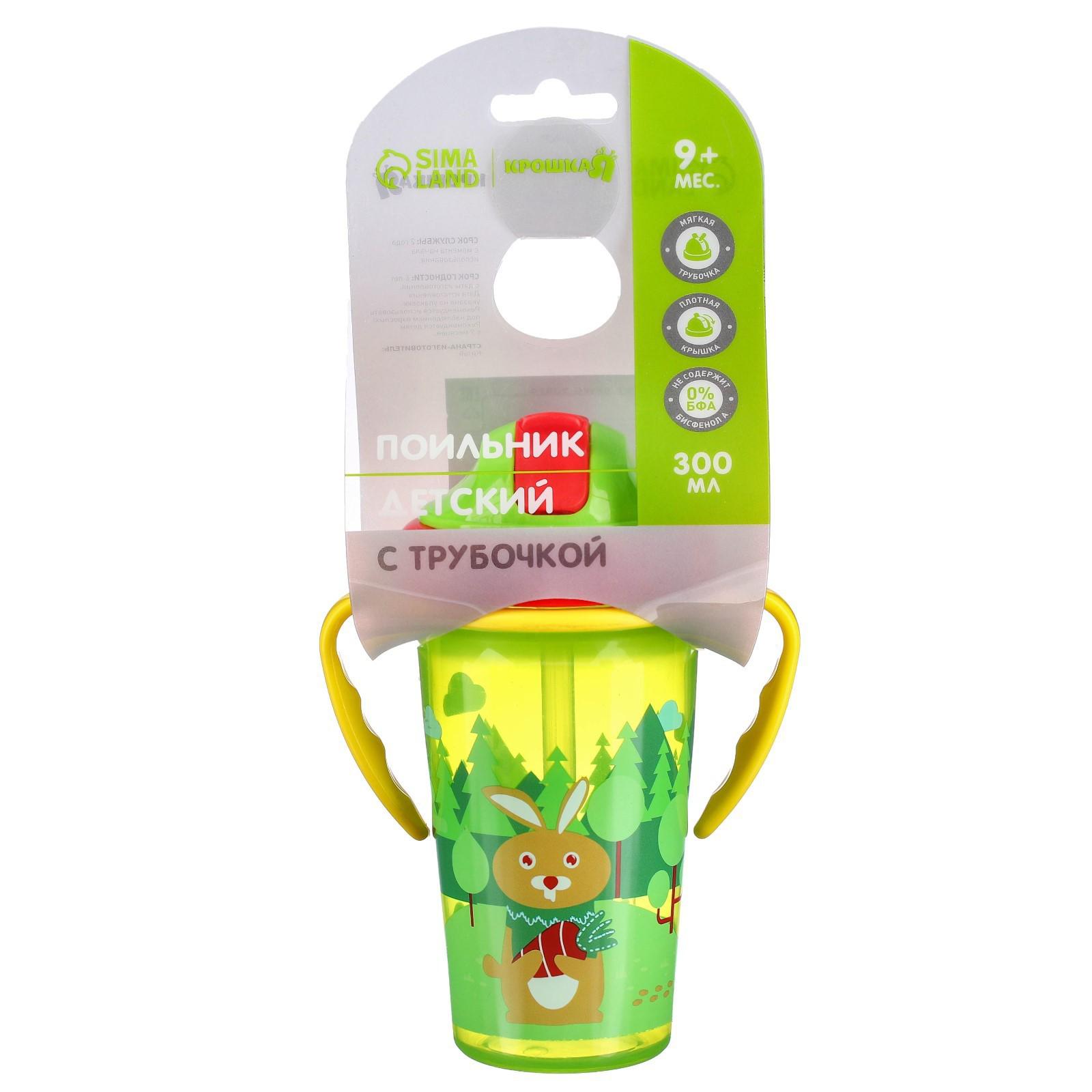 Поильник детский с силиконовой трубочкой, 300 мл., с ручками, цвет зеленый