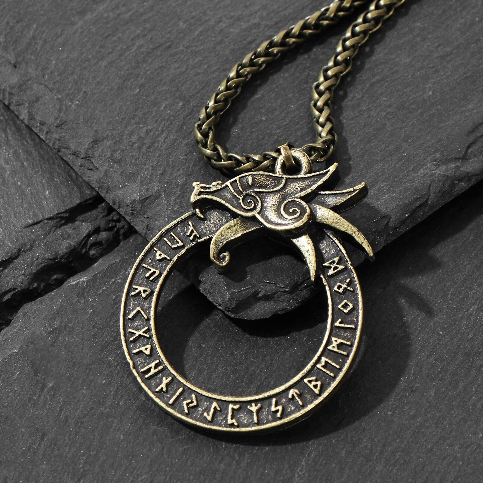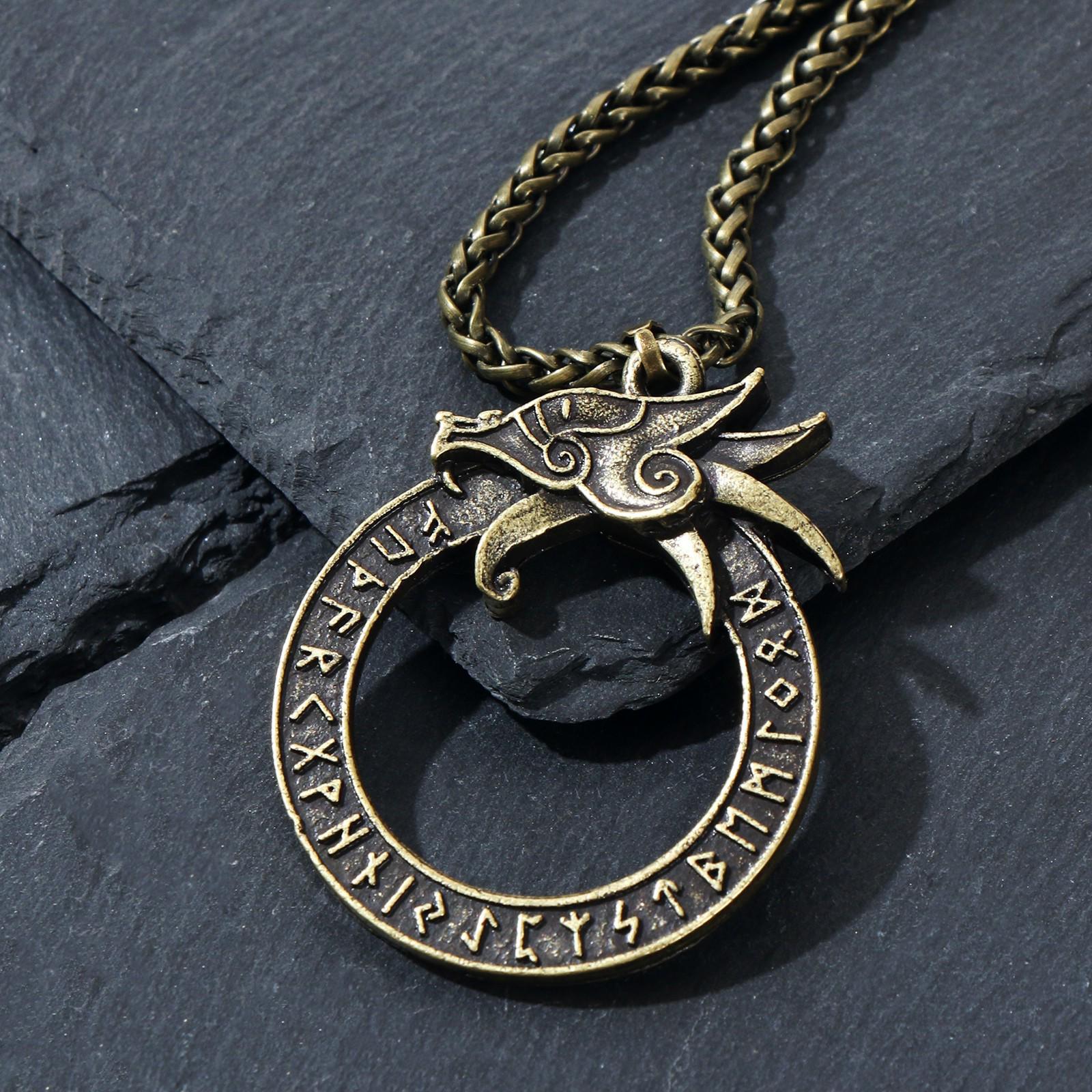 Кулон-амулет "Мидгардсорм" сын Локи, цвет чернёное золото, 62см