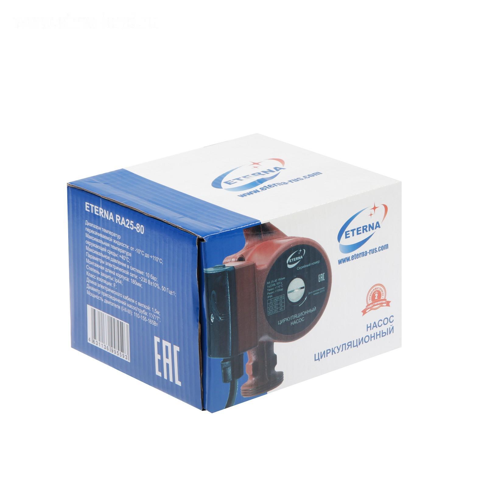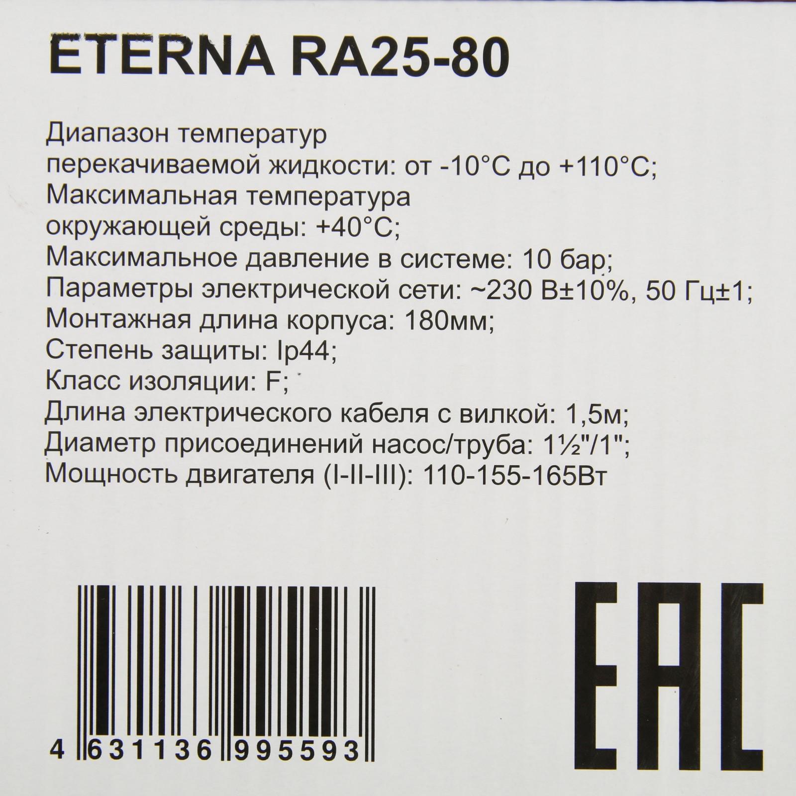 Насос циркуляционный ETERNA RА 25-80, напор 8 м, 116 л/мин, кабель 1.5 м, 110/155/165 Вт