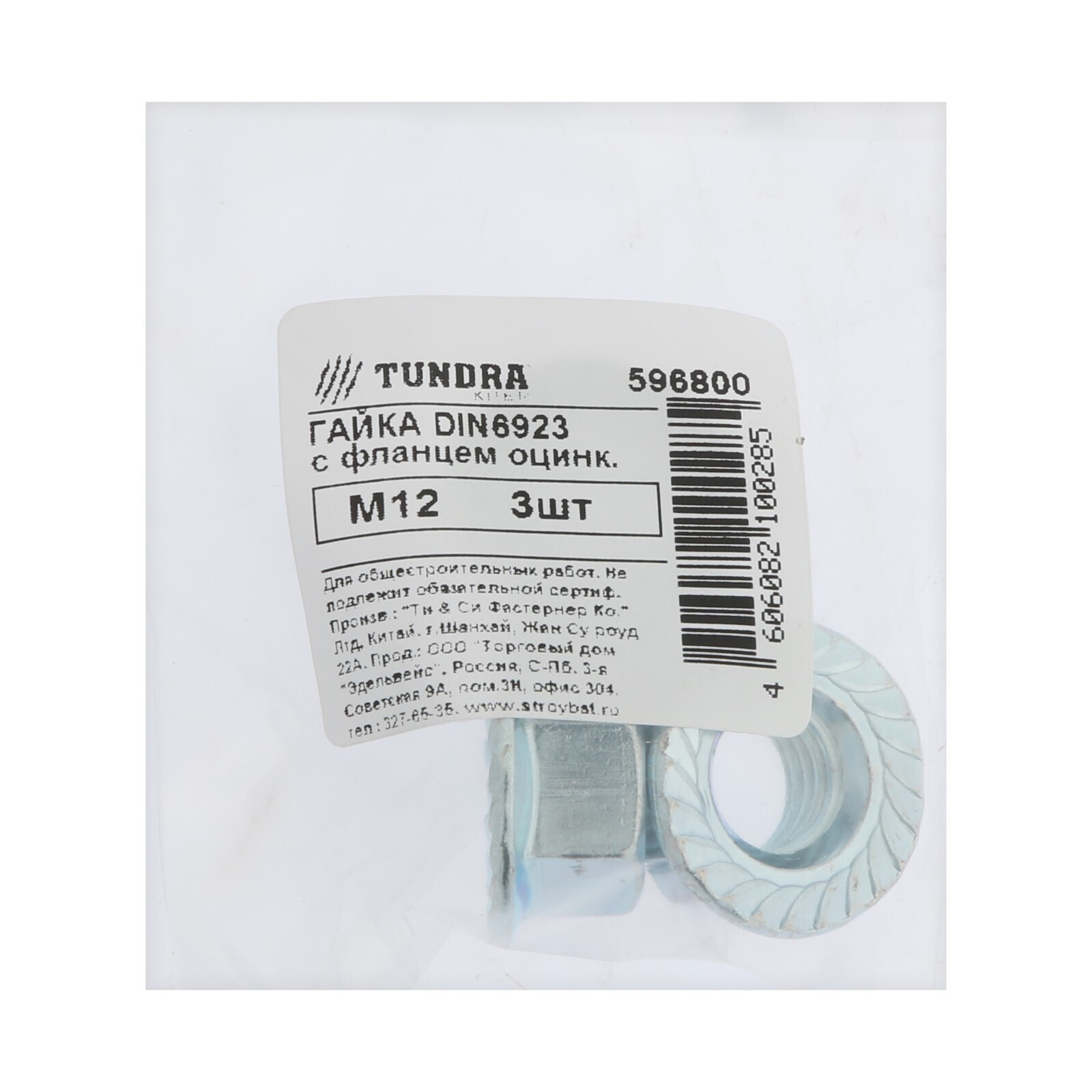 Гайка с фланцем, ТУНДРА, DIN 6923 М12 белый цинк 3 шт