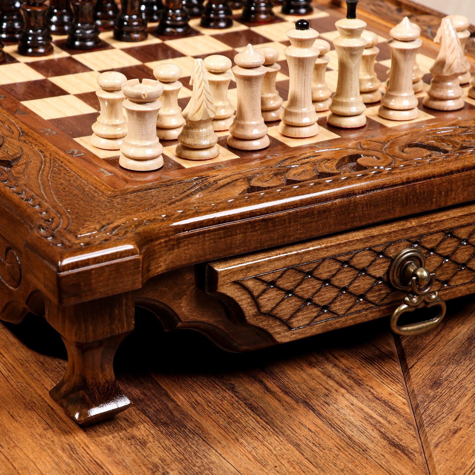 Шахматы ручной работы "Эксклюзив", с ящиками, на ножках, 40х40 см, массив ореха, Армения