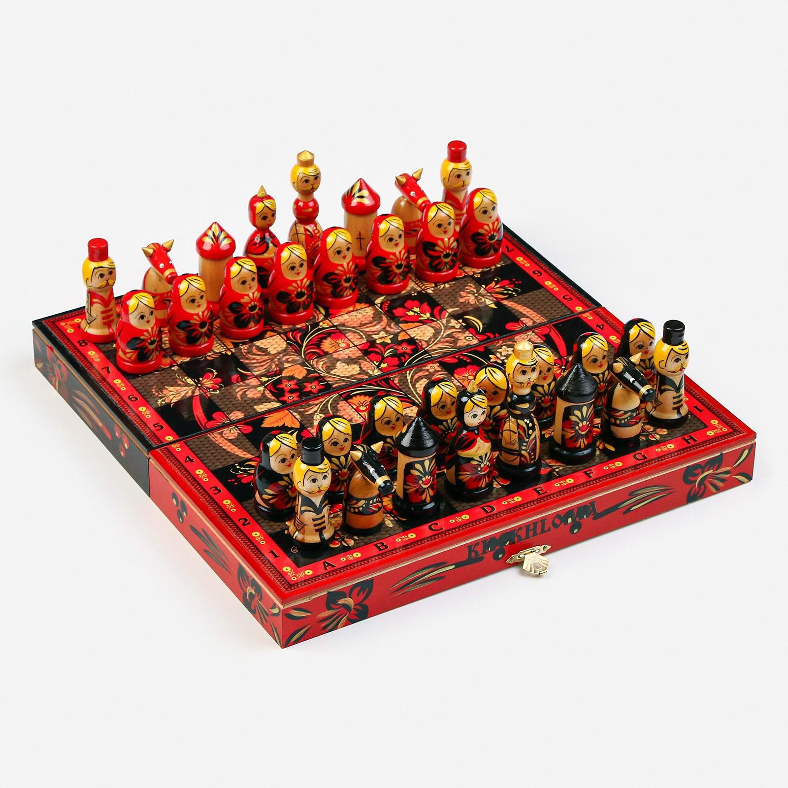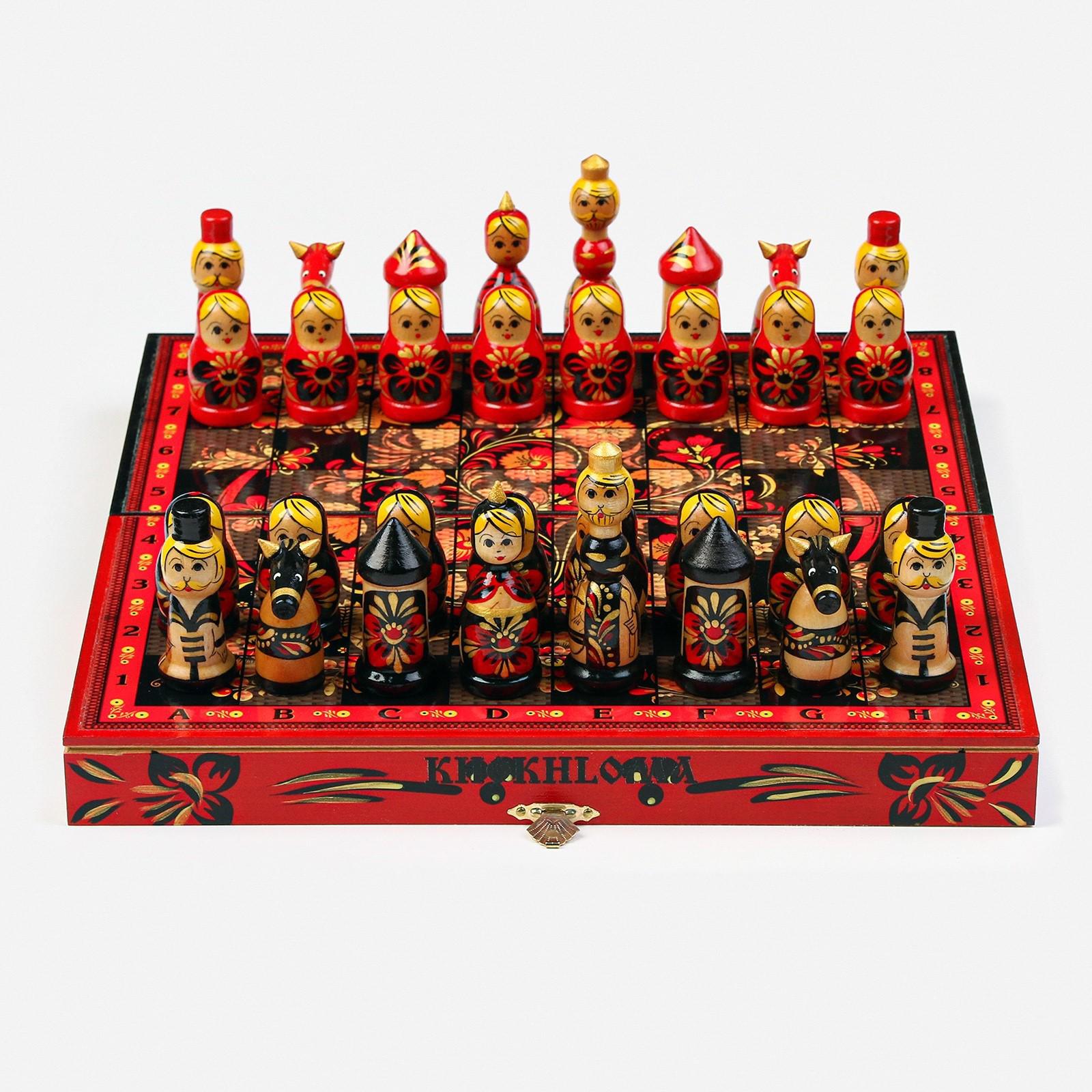 Шахматы "Хохлома", доска дерево 30 х 30 см, пешка h-5 см, король h-8.5 см