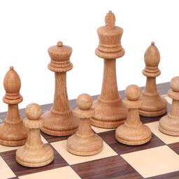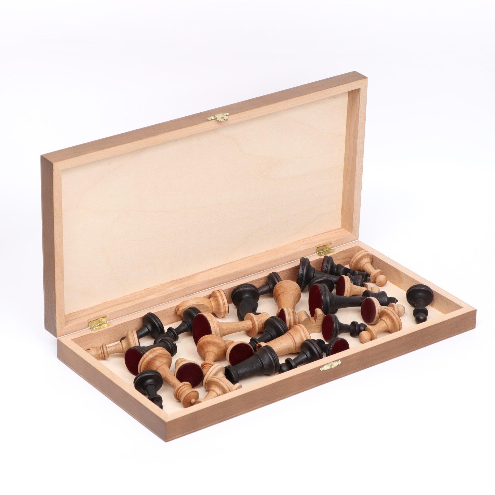 Неутяжелённые шахматные фигуры тщательно отшлифованы и покрыты лаком, сохранена фактура натурального цвета дерева.