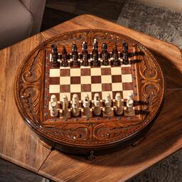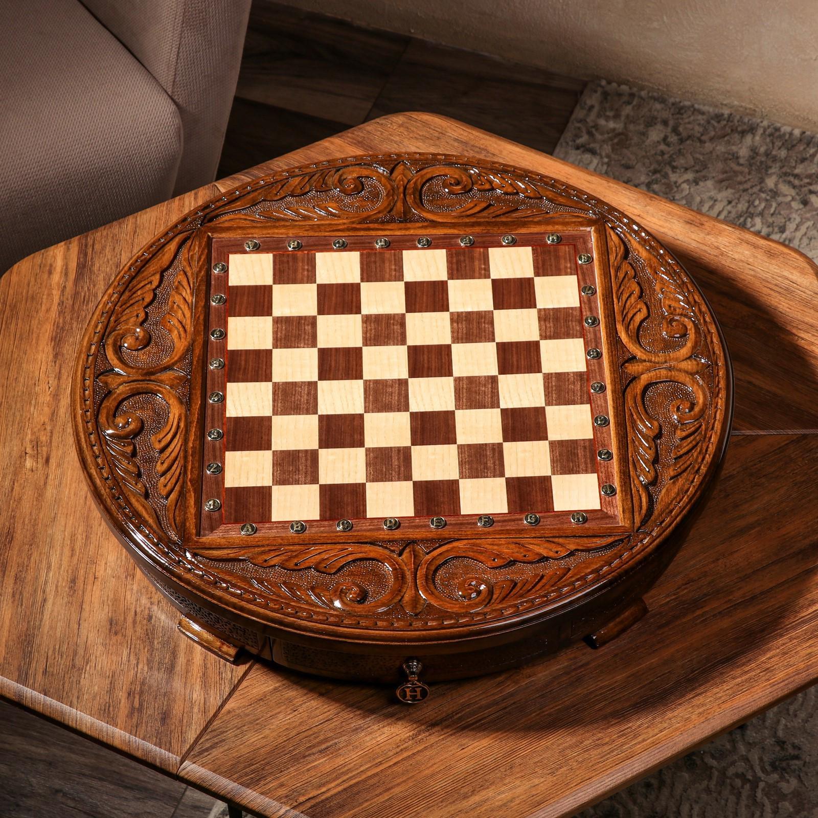 Шахматы ручной работы "Круглые", на ножках, 58х58 см, массив ореха, Армения