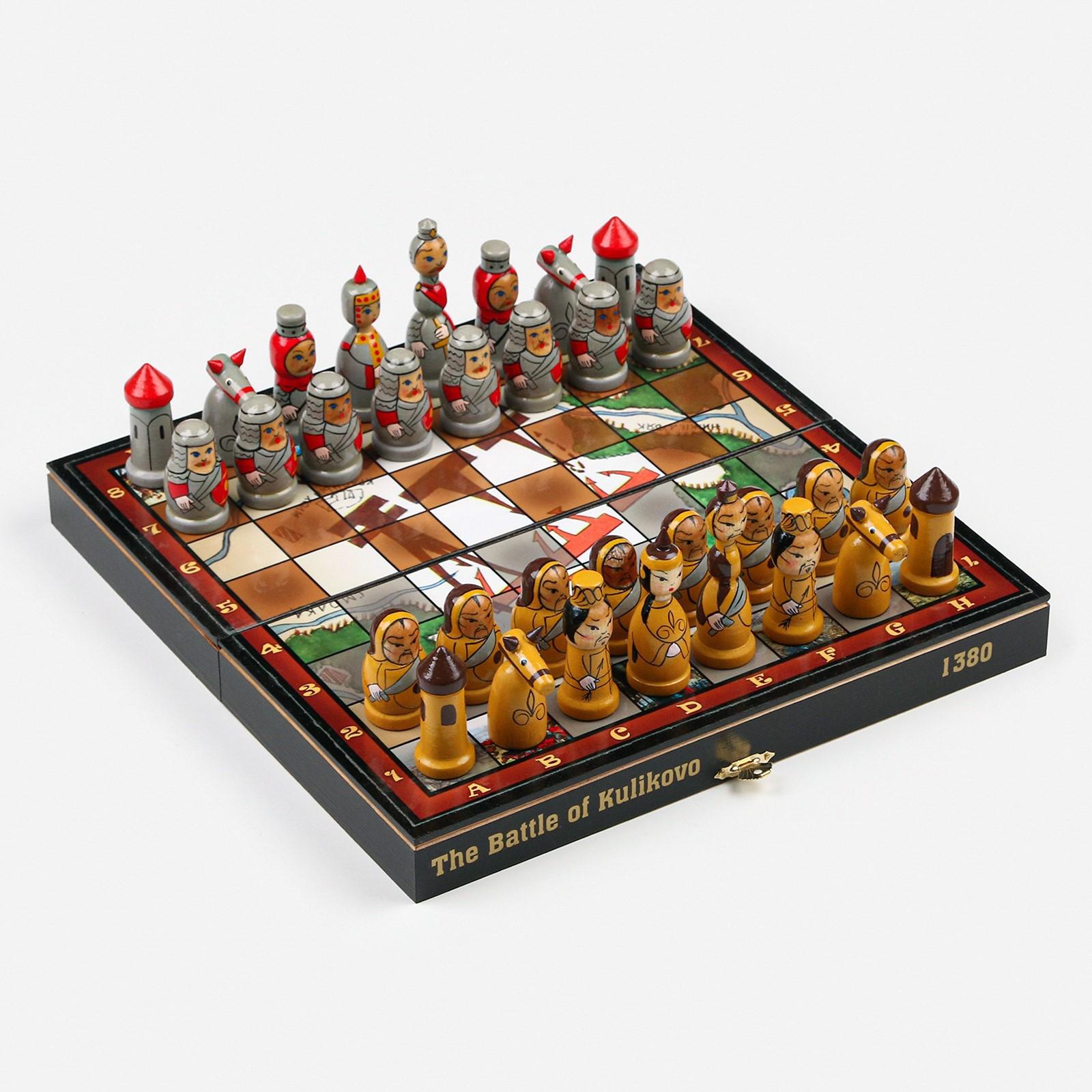 Шахматы "Куликовская битва", доска дерево 30 х 30 см, пешка h-5 см, король h-8.5 см