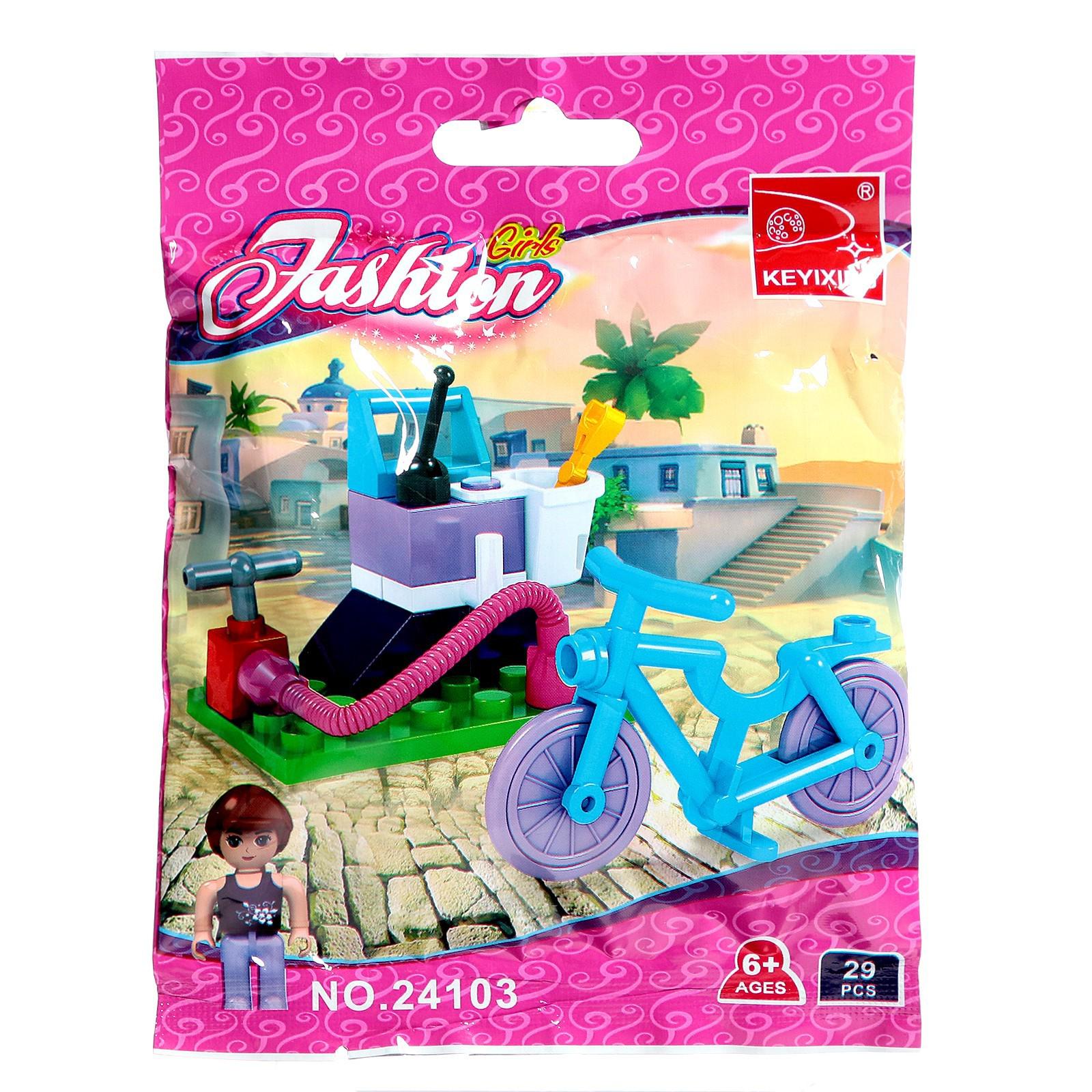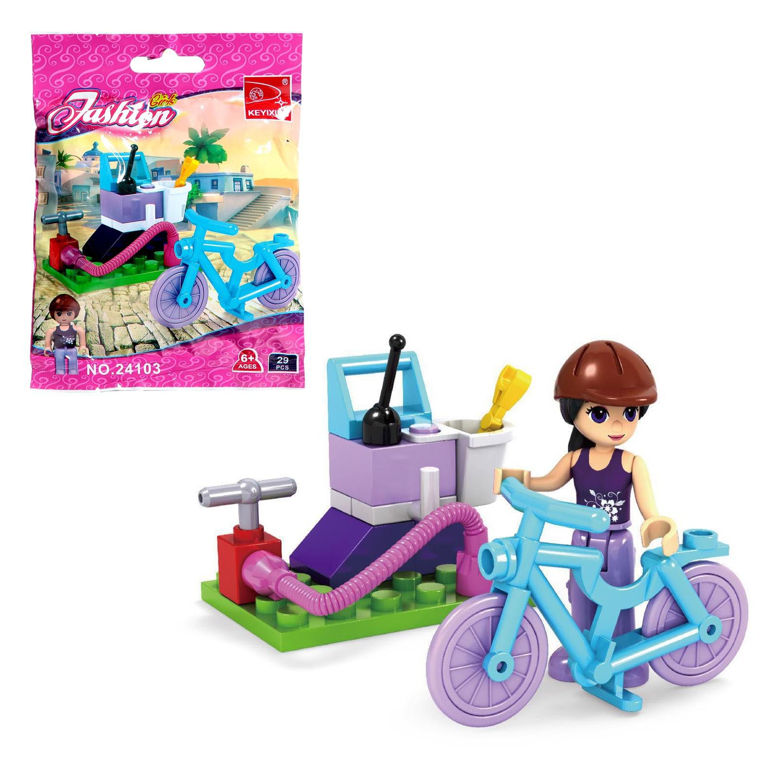 Набор содержит 24 детали и позволяет собрать фигурку девочки, велосипед и сервис. Разнообразные красочные элементы пробудят воображение ребёнка — дочурка придумает множество ярких сюжетов и с удовольствием проведёт время.