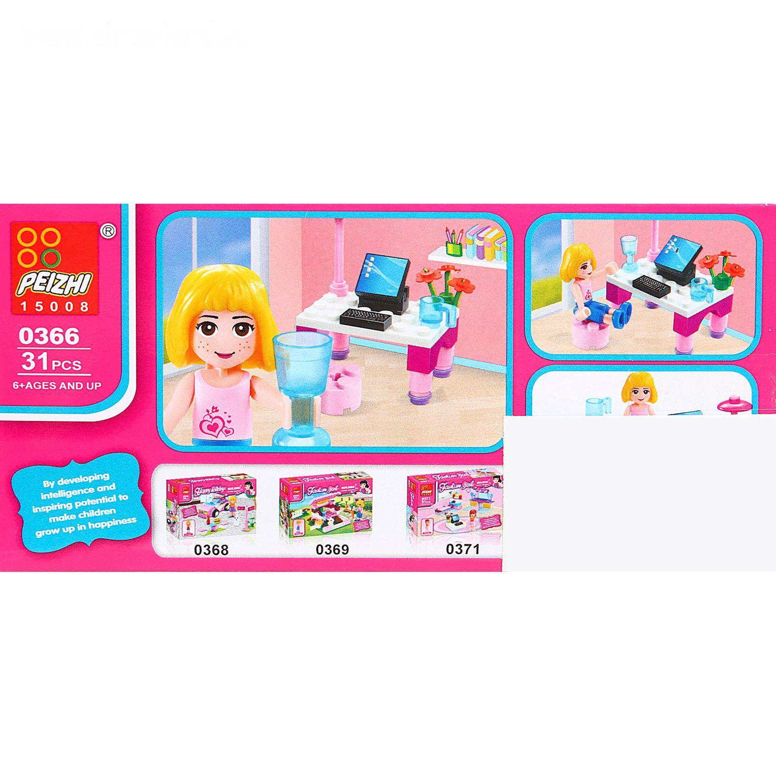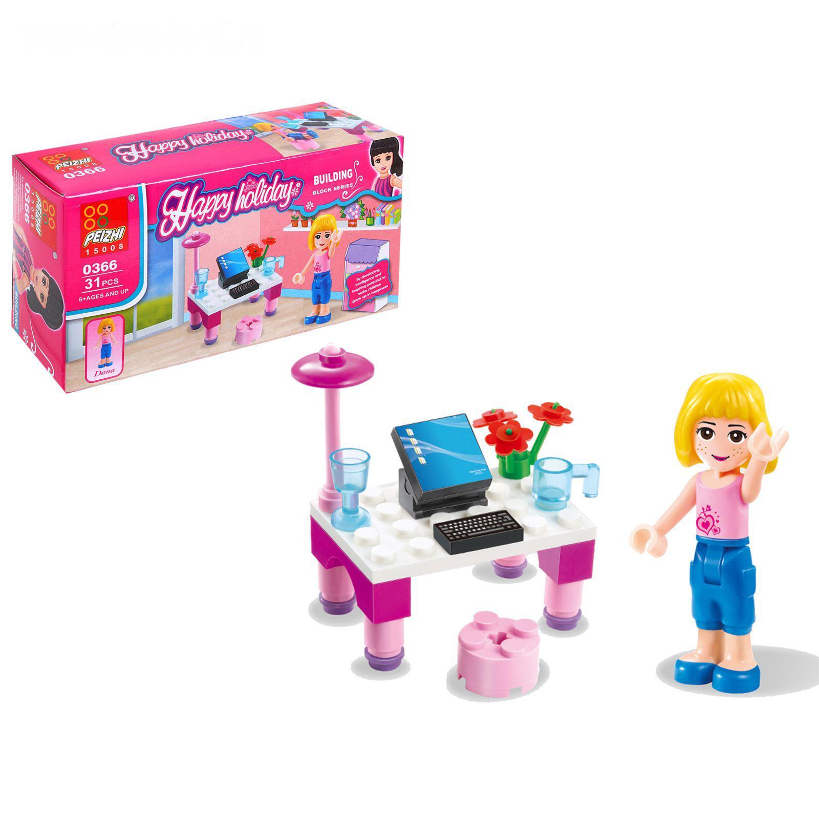 С набором «Весёлые выходные» торговой марки PEIZHI малышка обустроит комнату куколки, а для учёбы и работы установит ей производительный компьютер. Чтобы занятия доставляли удовольствие, девочка соберёт для персонажа стол со стульчиком, а для уюта добавит в интерьер цветов.