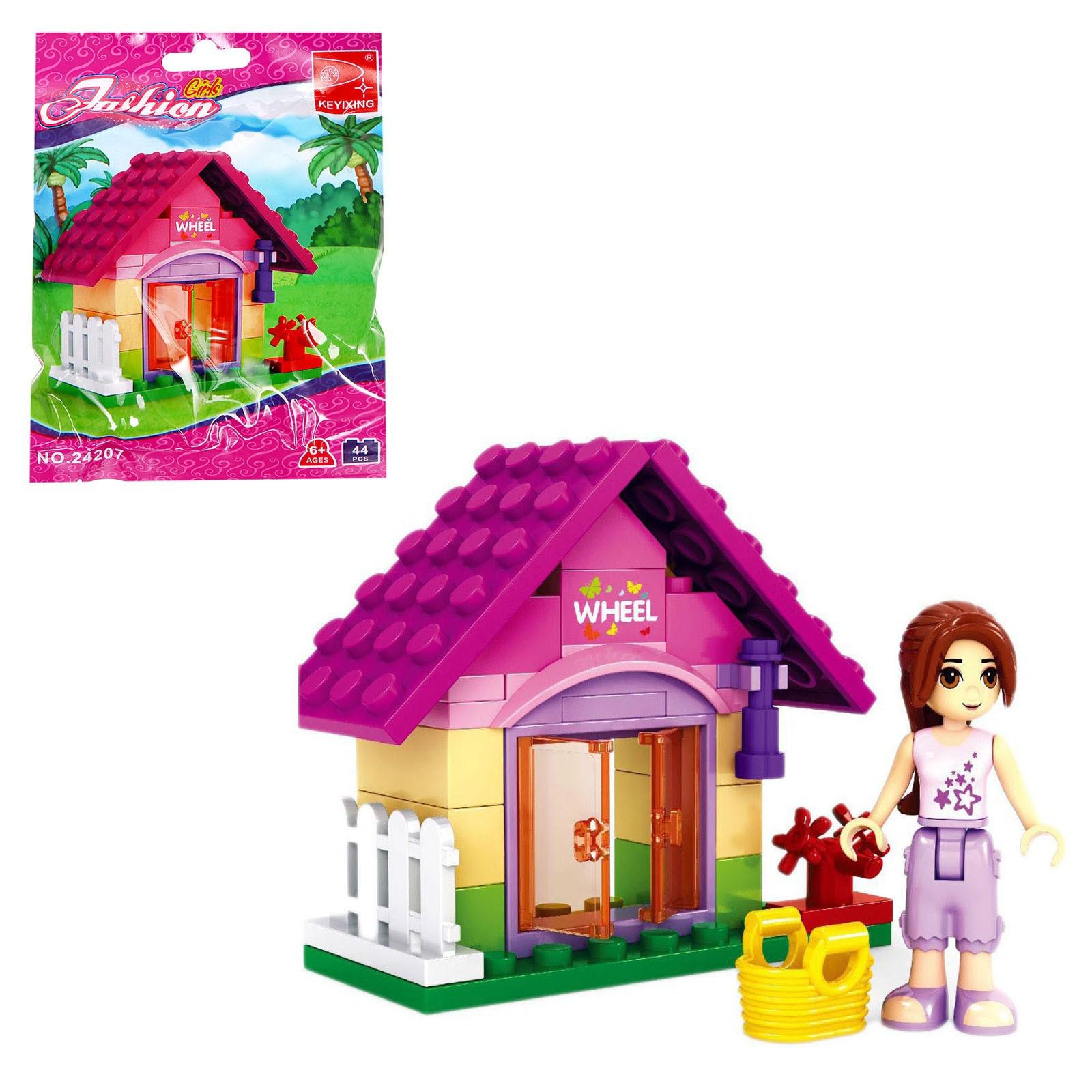 Набор содержит 44 детали и позволяет сконструировать дачный коттедж, аксессуары и фигурку девочки.