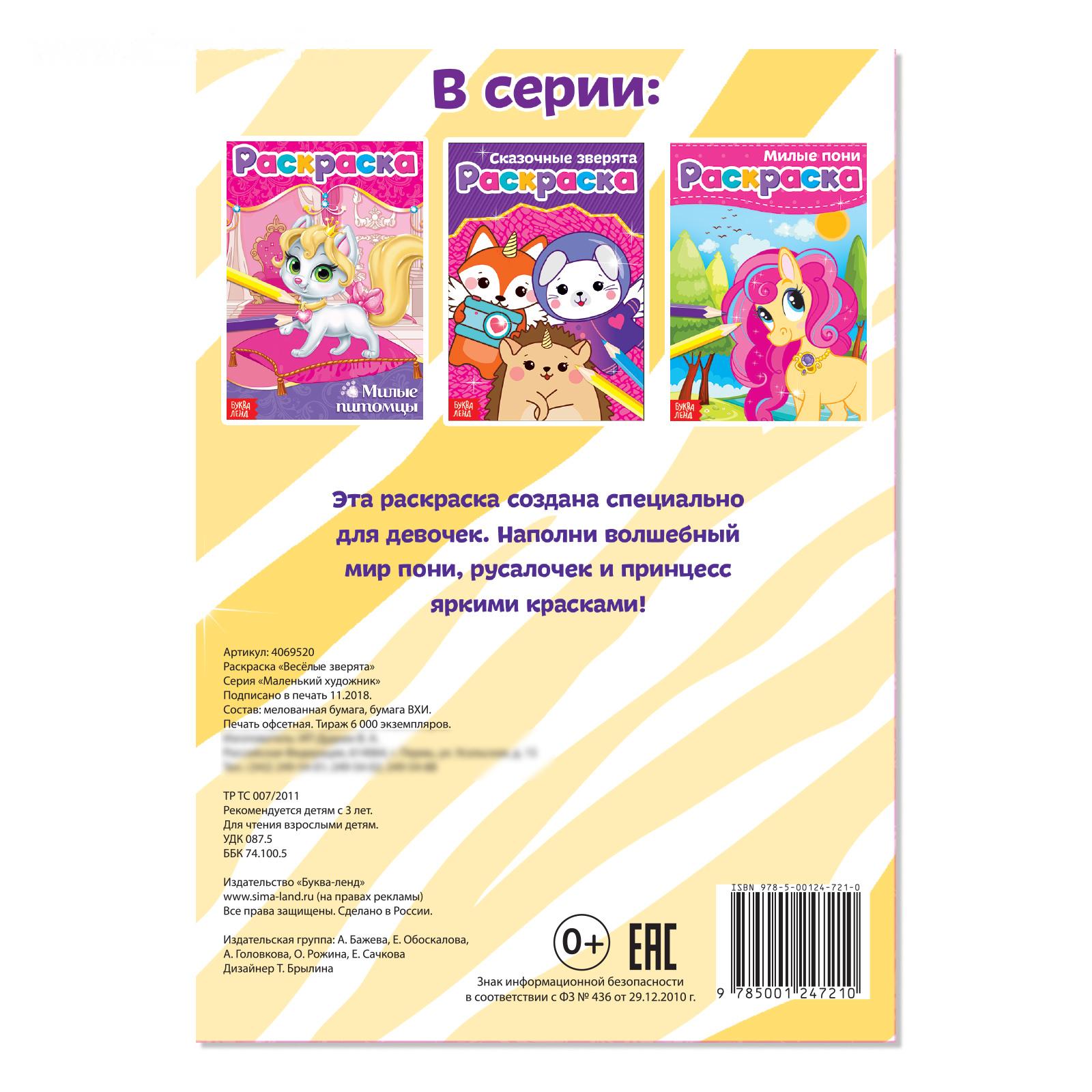 Раскраска «Весёлые зверята», А5, 12 стр.