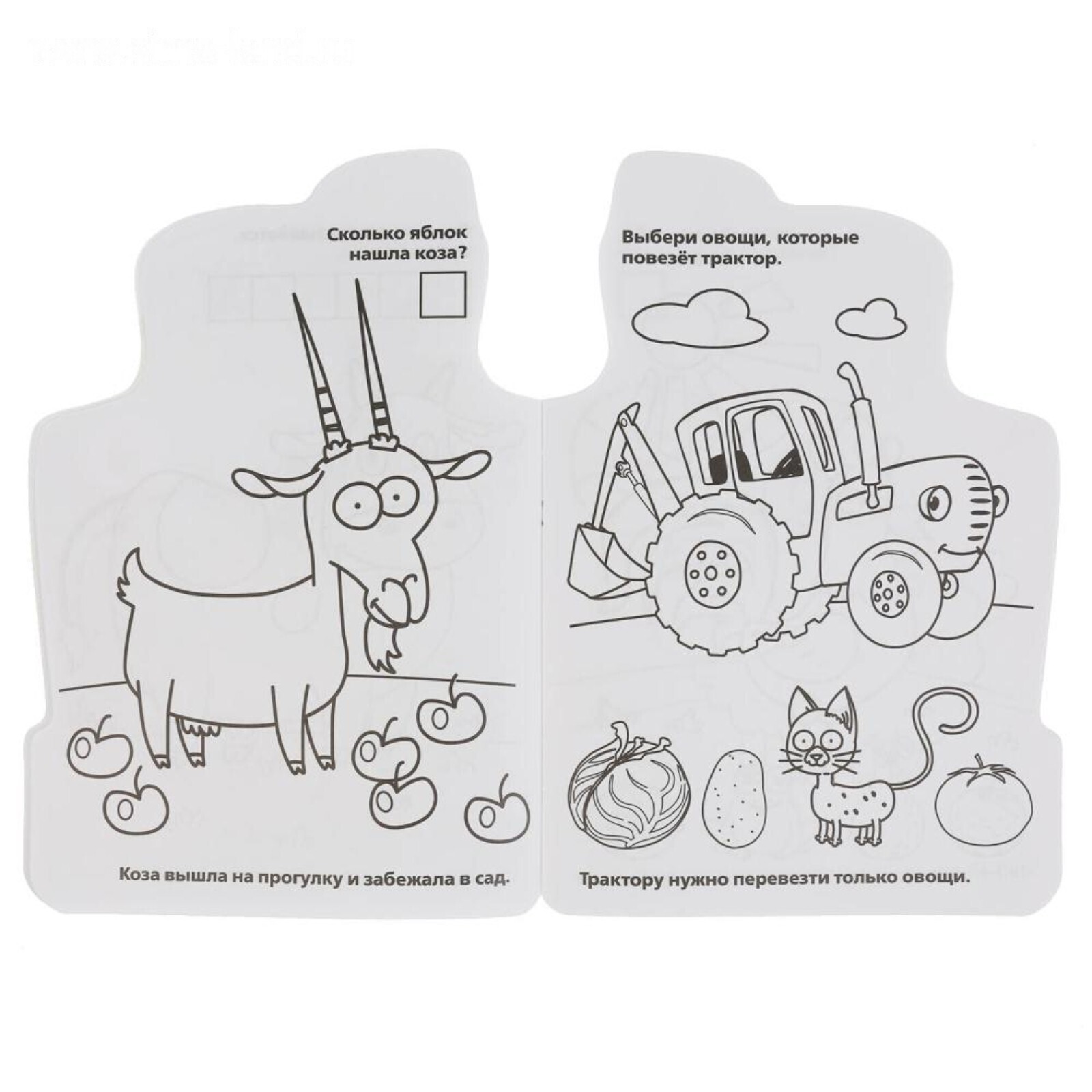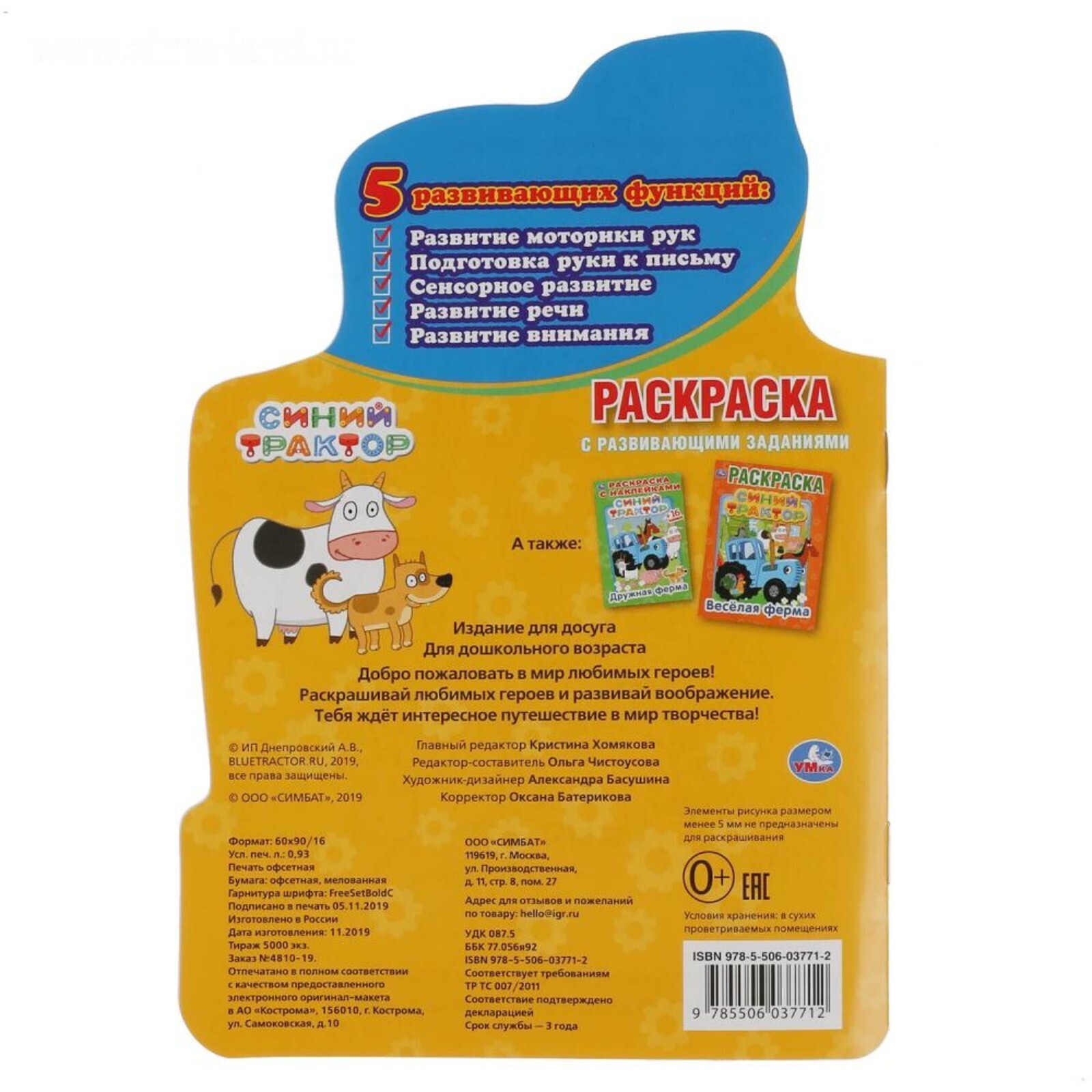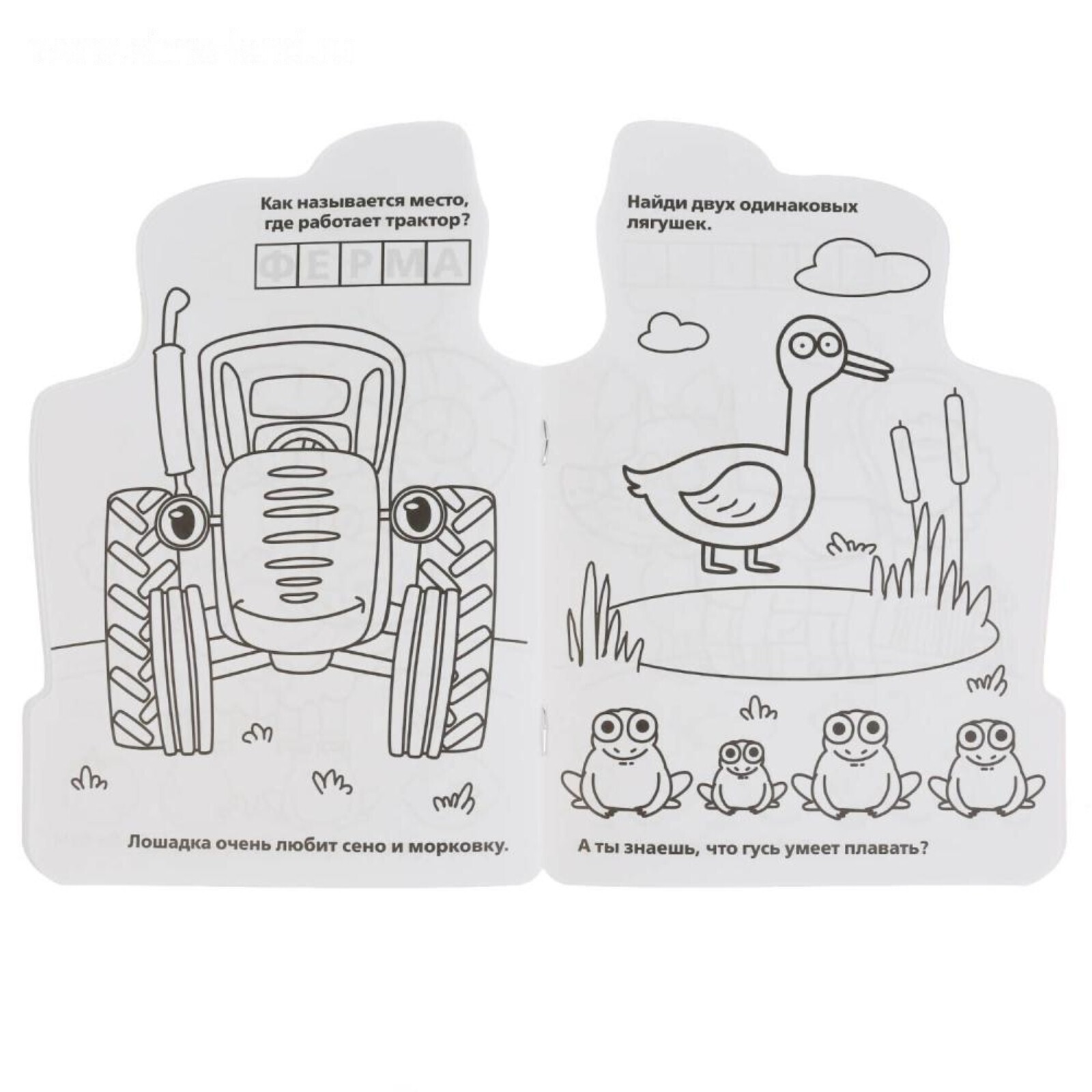 Развивающая раскраска с вырубкой в виде персонажа «Синий трактор»