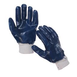 Перчатки, х/б, с нитриловым обливом, размер 9, с манжетой, синие