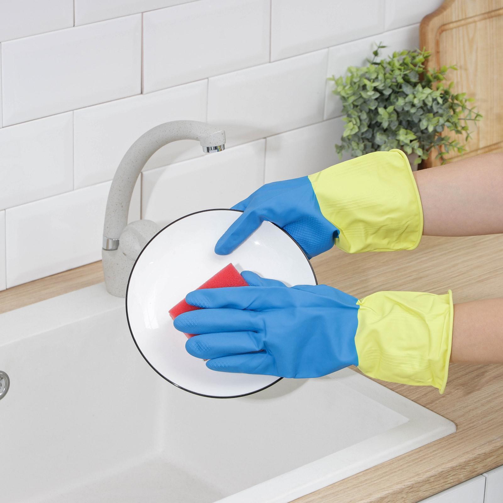 Перчатки хозяйственные резиновые Доляна, размер S, плотные, 80 гр, цвет МИКС