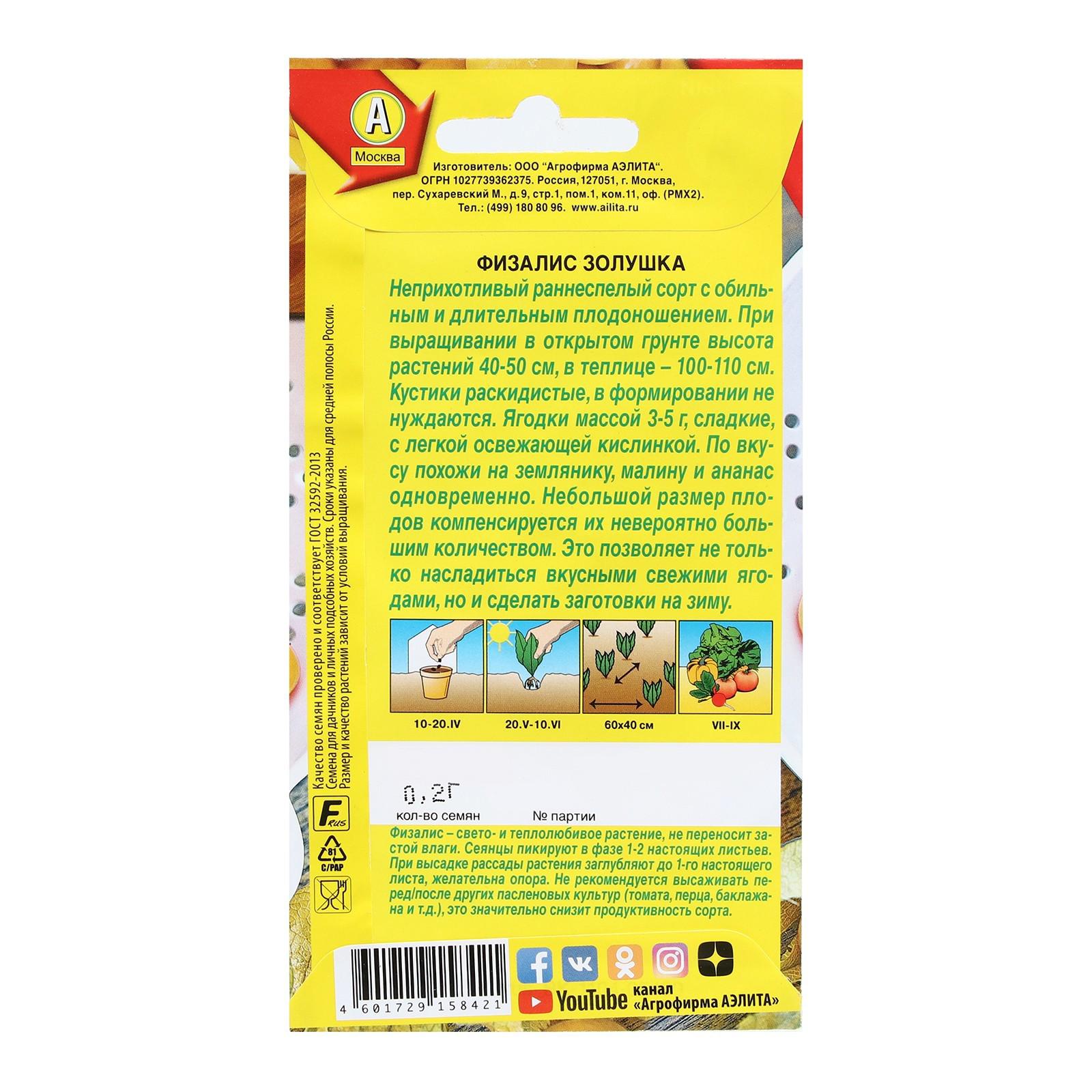Семена Физалис Золушка 0,2 г