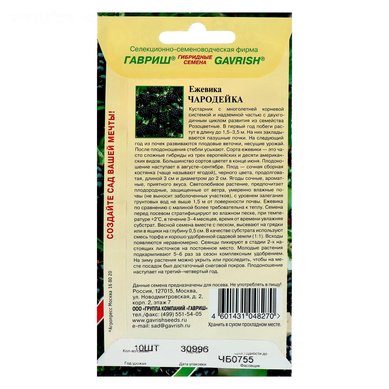 Кустарник с многолетней корневой системой и надземной частью с двухгодичным циклом развития из семейства Розоцветные. В первый год побеги растут в длину до 1,5-3,5 м. На них закладываются пазушные почки. На следующий год из почек развиваются плодовые веточки, несущие урожай. После плодоношения стебли усыхают. Сорта ежевики часто это сложные гибриды из трех европейских и 10 американских видов. Большинство сортов цветет в конце июня. Плодоношение наступает в августе-сентябре. Плод — сборная сочная костянка (чаще называют ягодой), черного цвета, продолговатая, длиной 3 см и диаметром до 2 см. Ягоды сочные, ароматные, приятного вкуса. Светолюбивое растение, предпочитает плодородные, защищенные от ветра, умеренно влажные почвы (не выносит заболоченных участков), с уровнем залегания грунтовых вод не выше 1,5 м от поверхности почвы. Ежевика по сравнению с малиной более требовательна к теплу. Семена перед посевом стратифицируют во влажном песке, при температуре +2?С, в течение 3-4 месяцев, время от времени увлажняя субстрат. Весной семена вместе с песком, высевают на грядки или в ящики на глубину 0,5 см. В качестве субстрата используют смесь торфа и хорошо удобренной садовой земли (1:1). Всходы появляются неравномерно. Сеянцы пикируют в стадии 2-х настоящих листочков на постоянное место. Молодые растения подкармливают 5-6 раз за сезон комплексным удобрением. На зиму растения можно укрыть или проследить, чтобы на месте посадок был достаточный снеговой покров. Плодоношение наступает на третий-четвертый год.