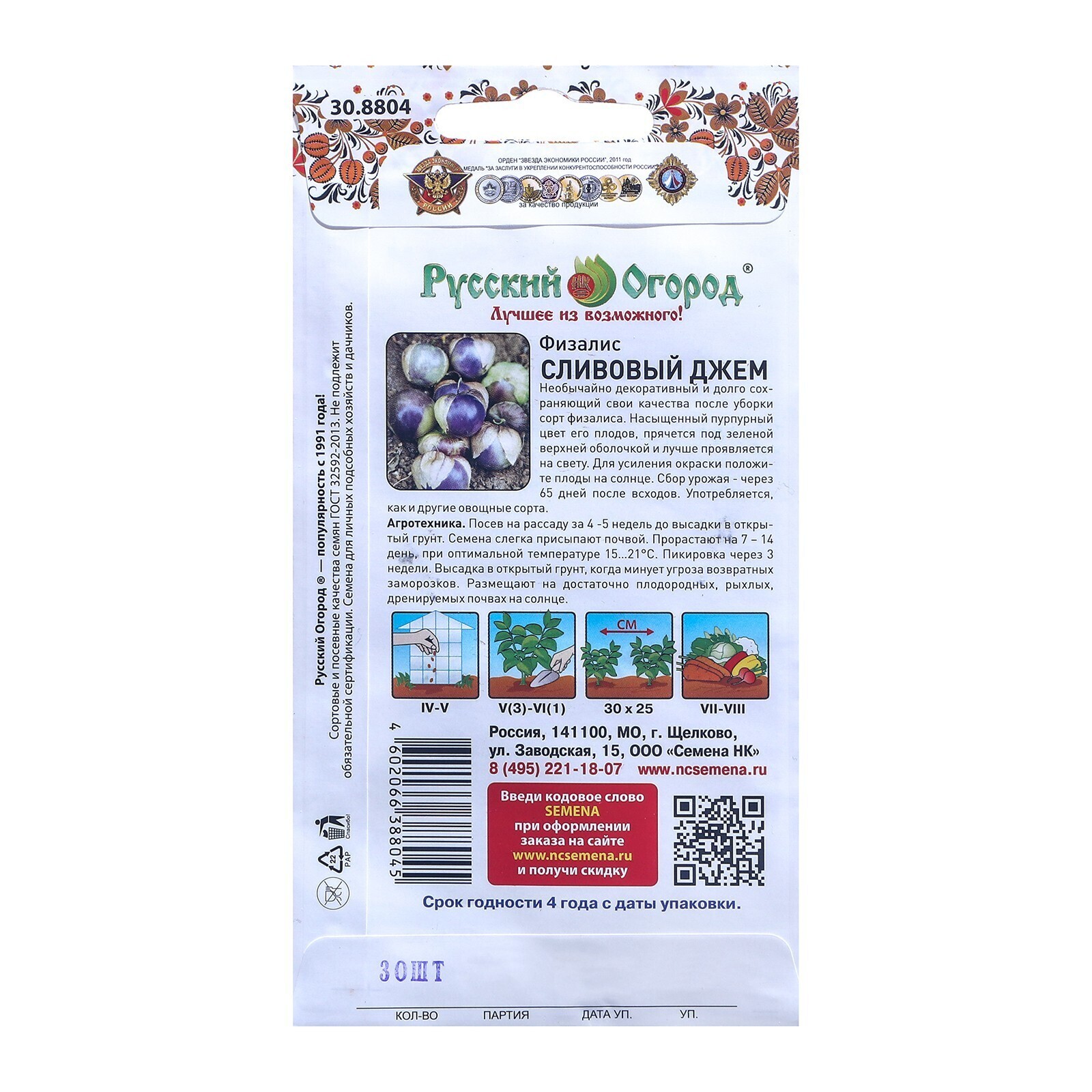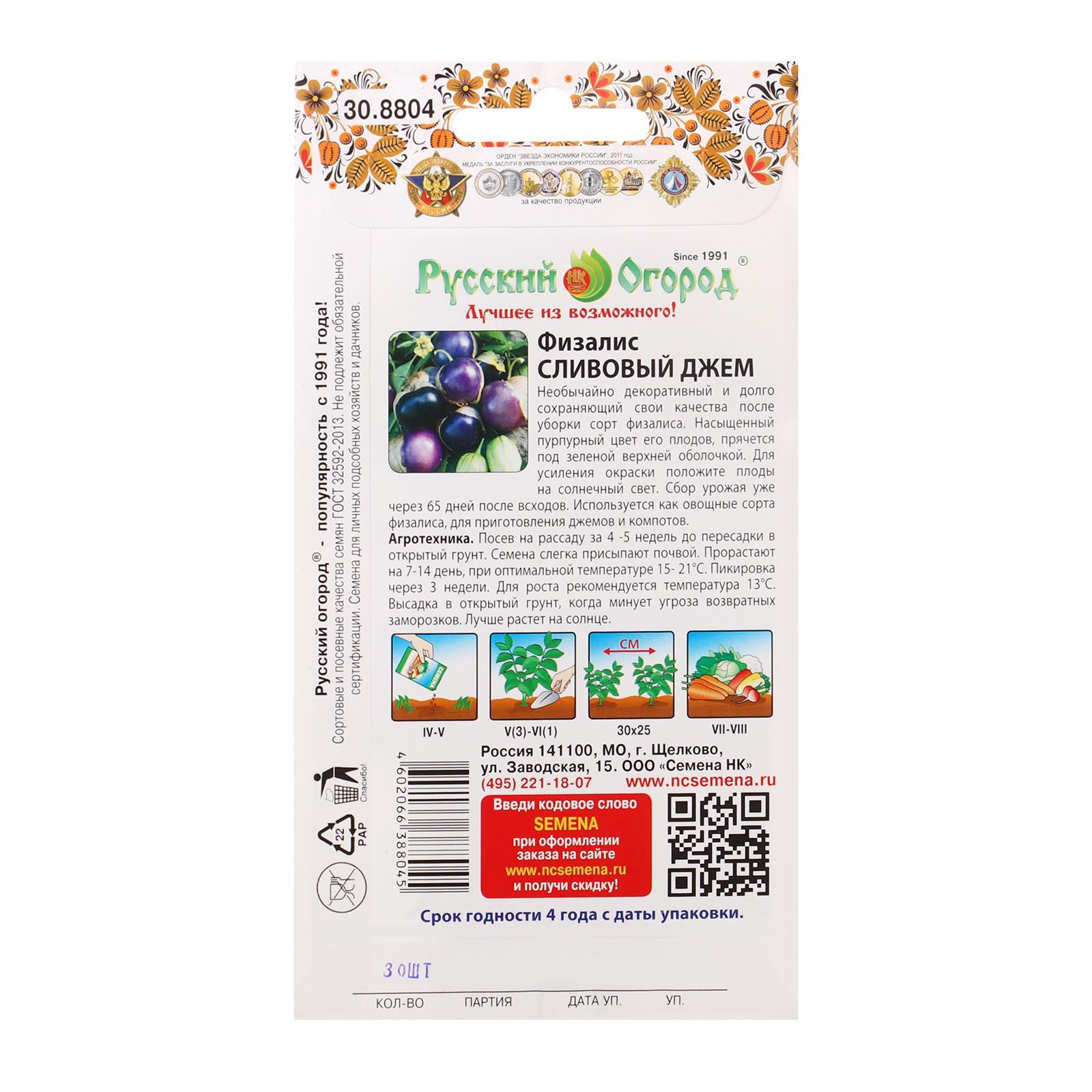 Семена Физалис "Сливовый джем", серия Русский огород, 30 шт