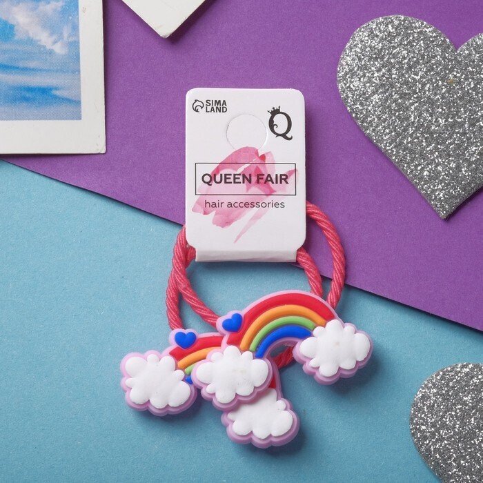 Резинка для волос "Крошка" (набор 2 шт) радуга сердечко, красный