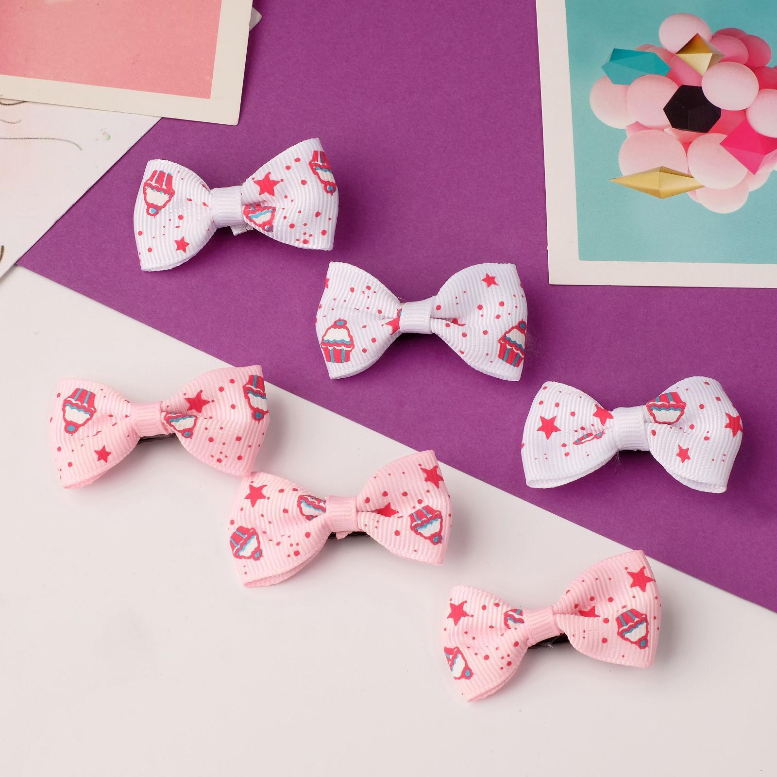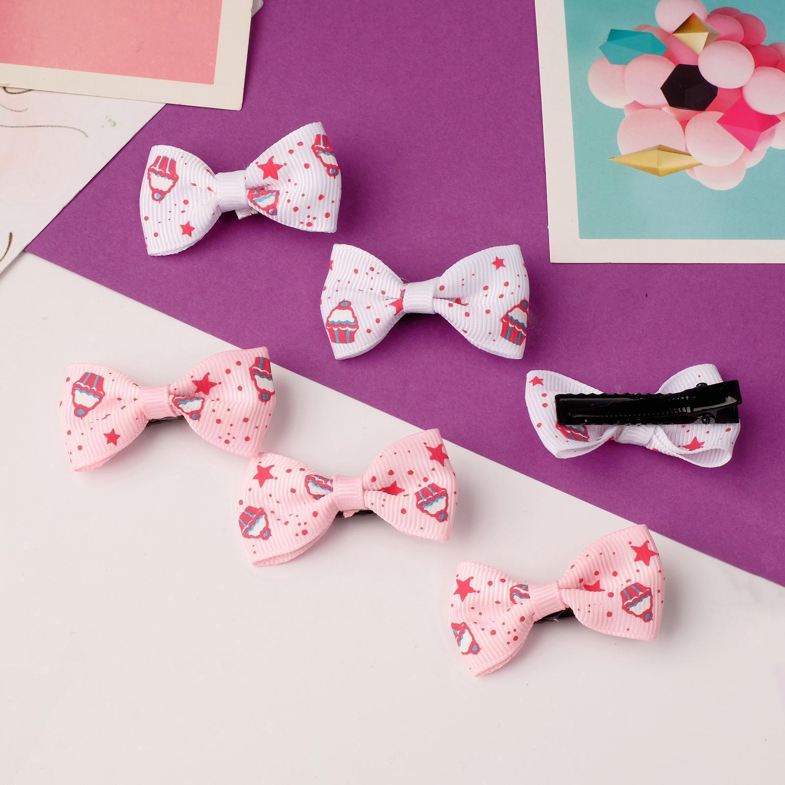 Зажим для волос "Бантик" звёзды и кексы 4,5 см, белый и розовый