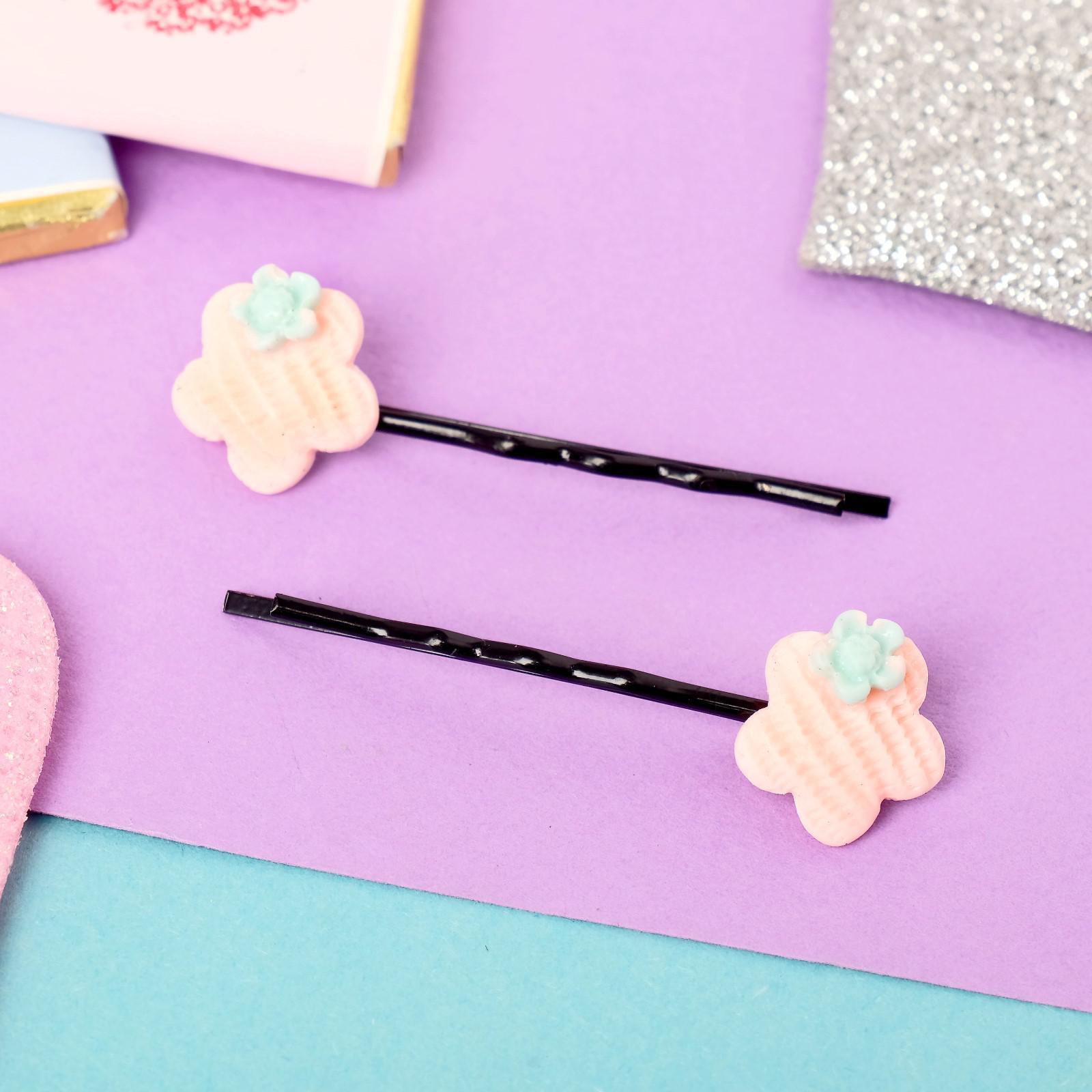 Невидимка для волос "Текстурная" (набор 2 шт) 5 см, цветок, микс