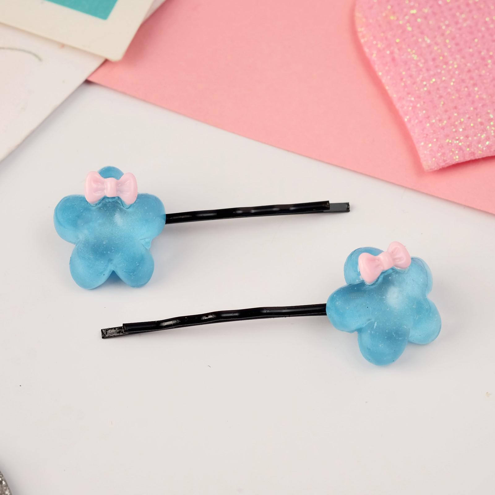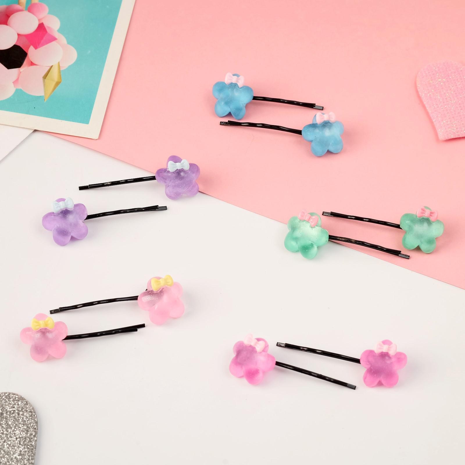 Невидимка для волос "Карамелька" (набор 2 шт) цветочек 4 см, микс