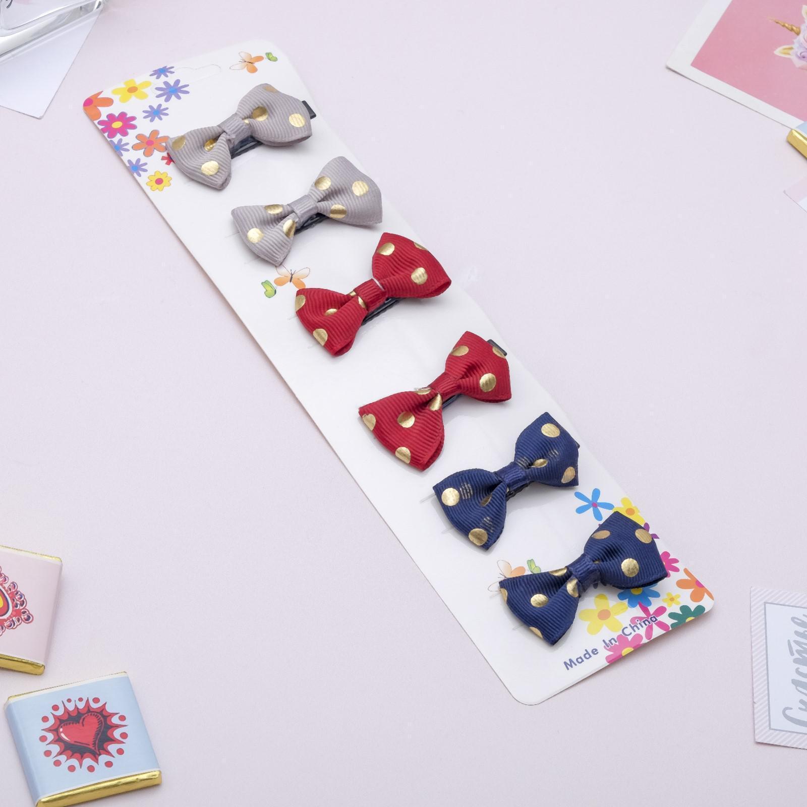 Зажим для волос "Бантик" крупный горошек, 4 см, микс