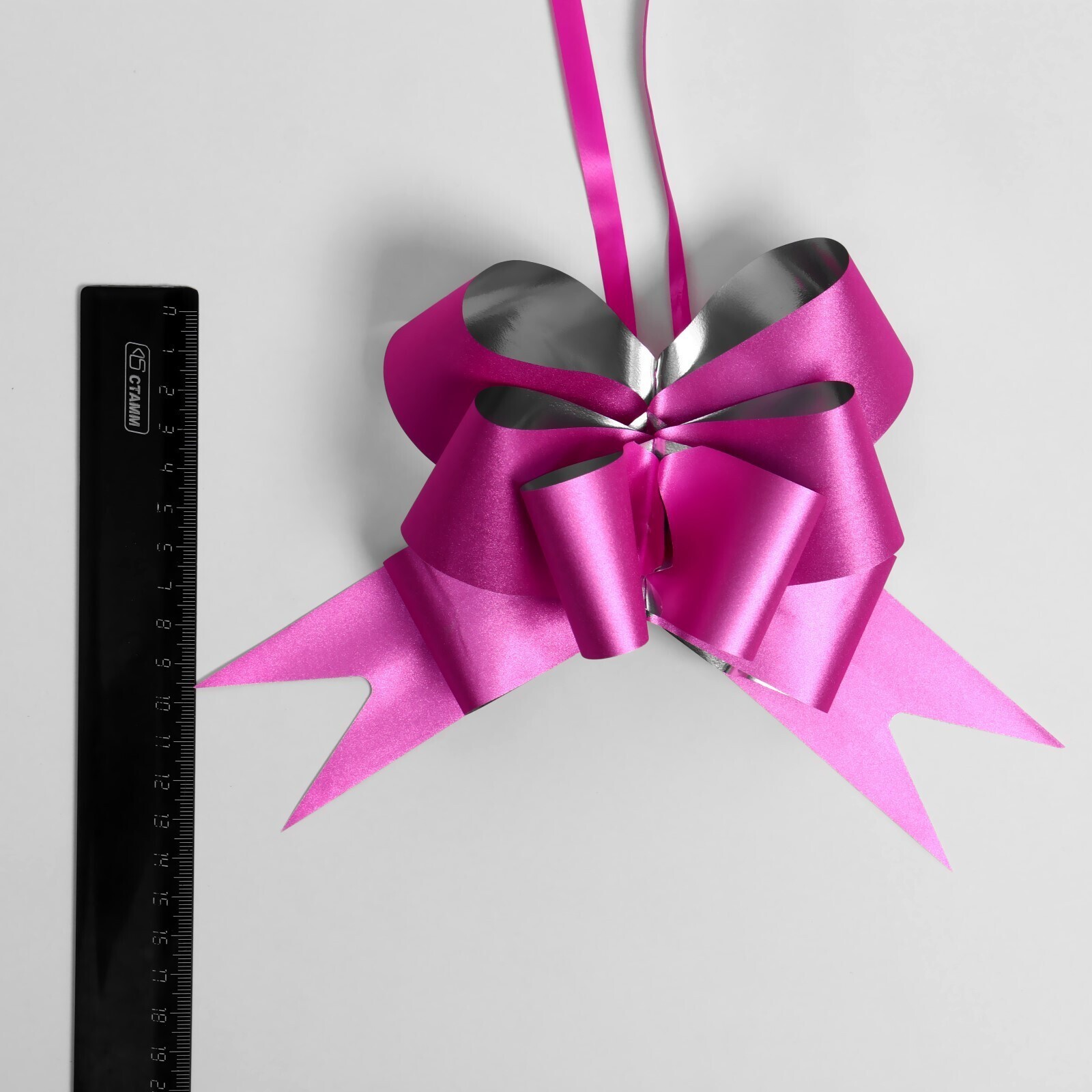 Для того чтобы собрать бант, надо потянуть за две ленточки, находящиеся между широкими лентами, удерживая широкие ленты в месте спайки.