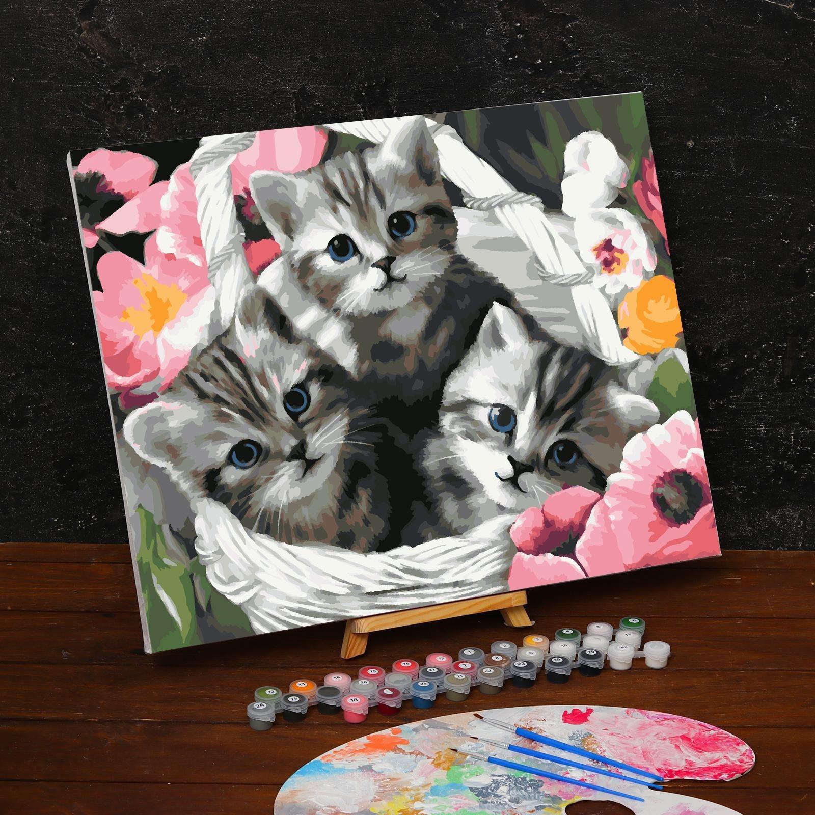 Картина по номерам на холсте с подрамником «Котята» 40х50 см