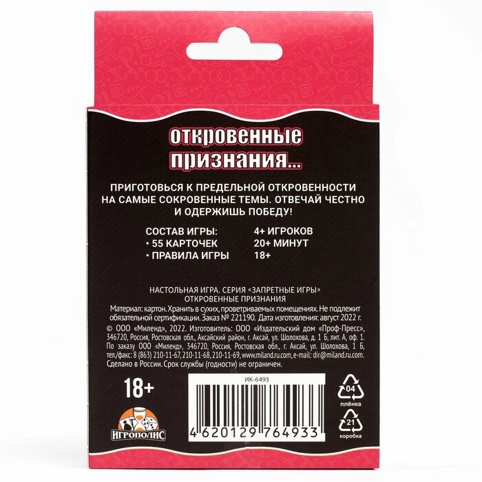 Карточная игра "Откровенные признания", 18+
