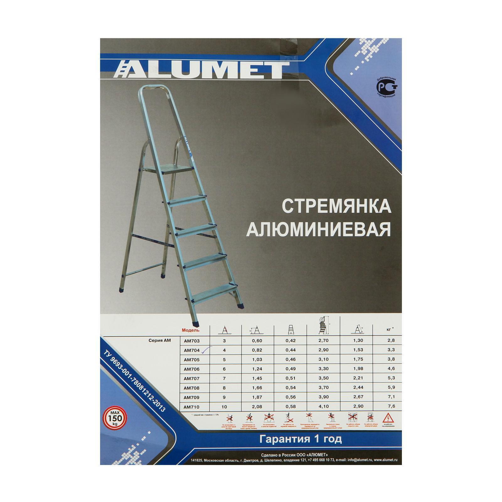 Стремянка "Алюмет", алюминиевая, матовая, 4 ступени, 820 мм